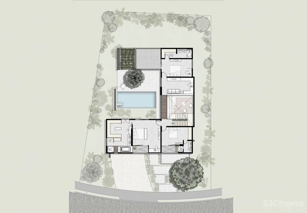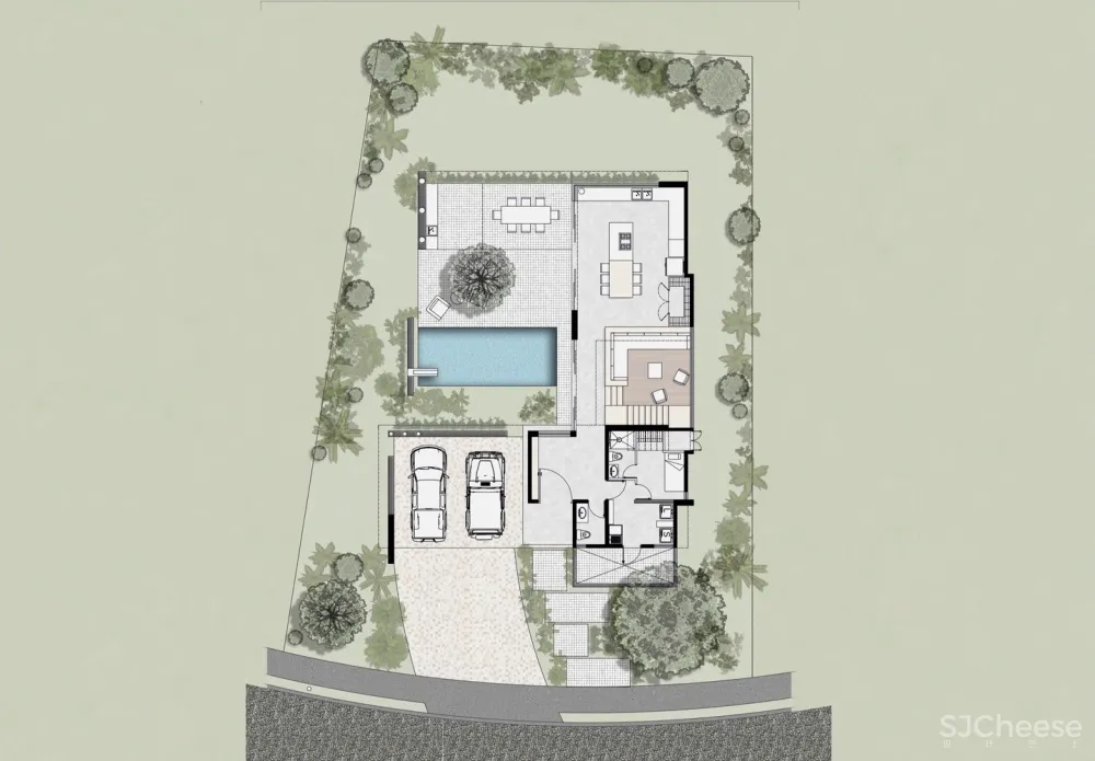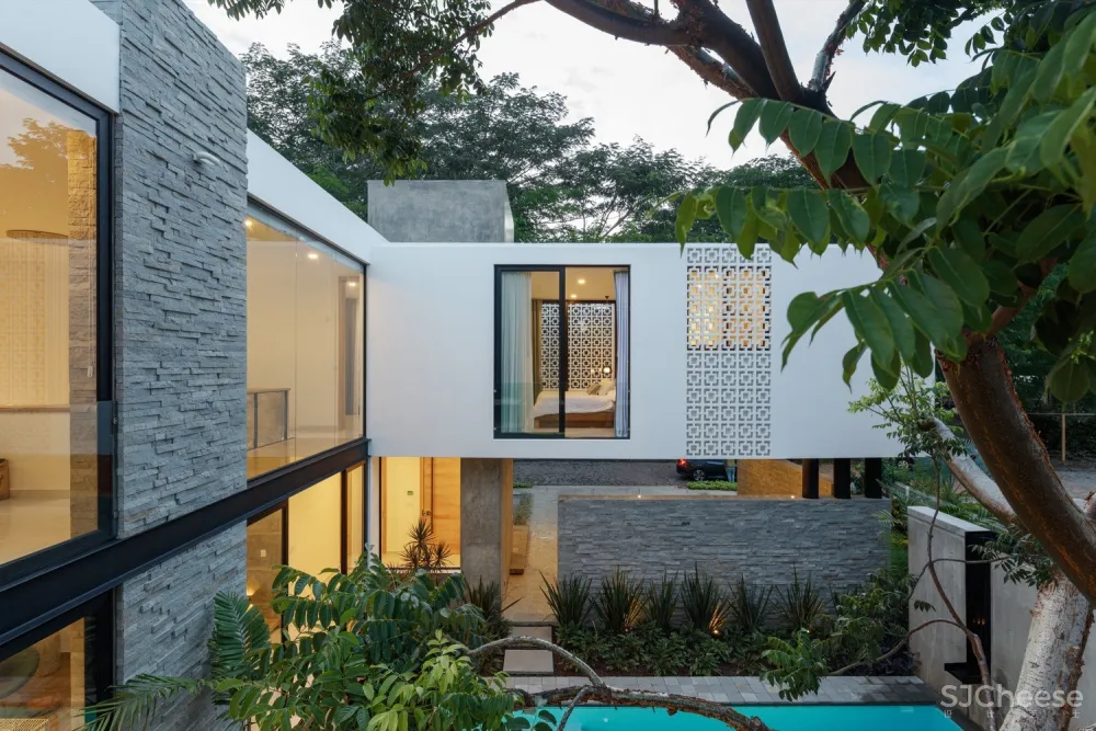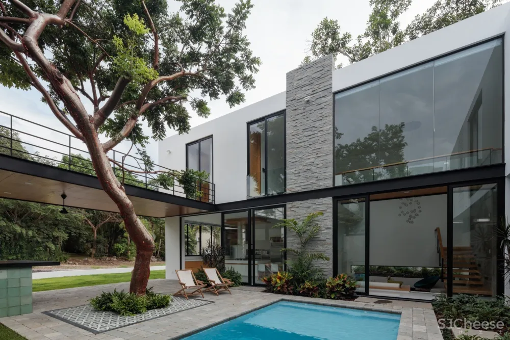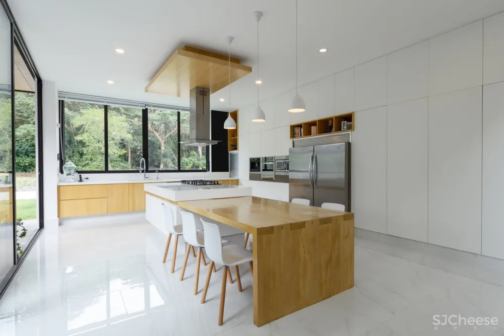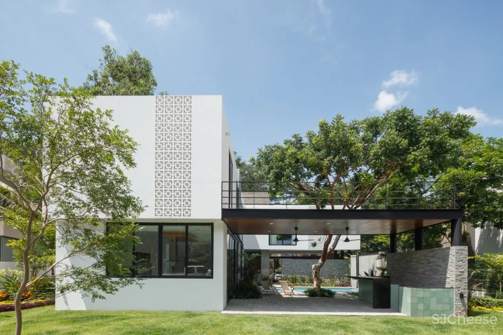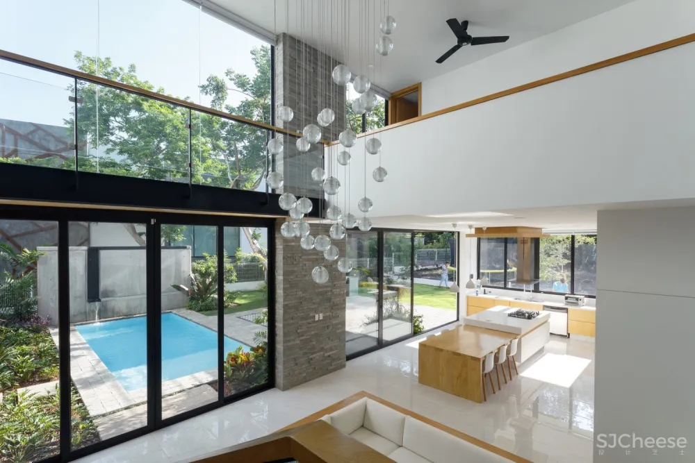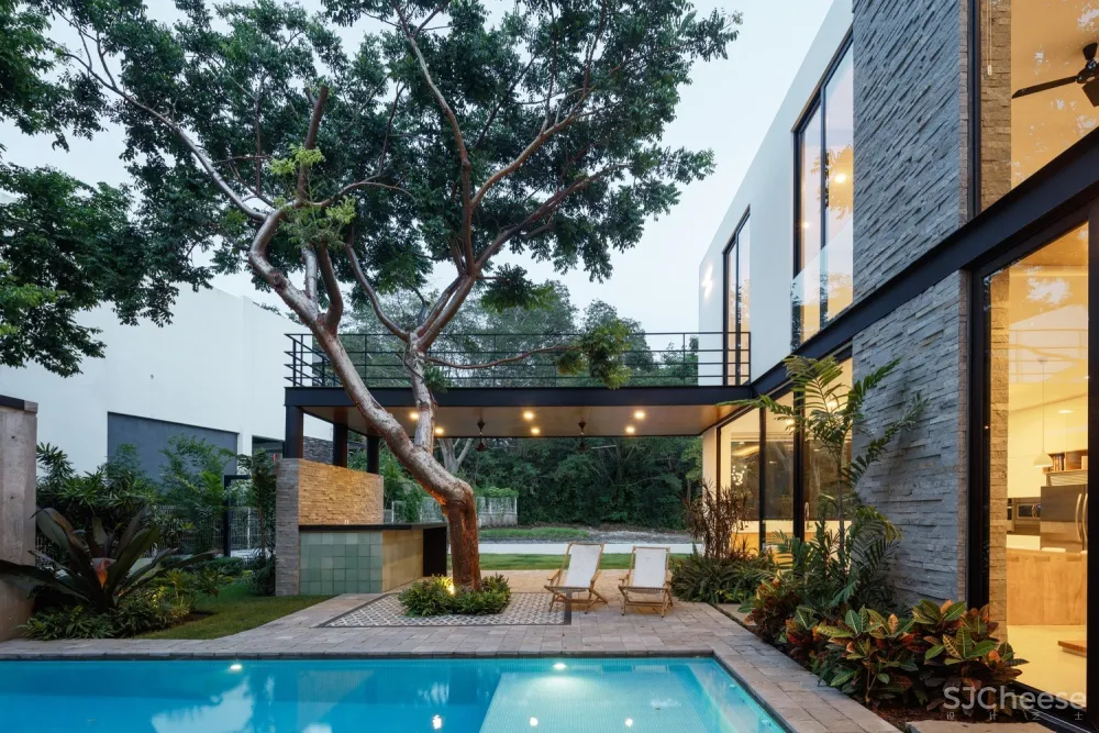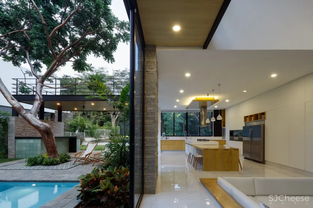 室内完全被开口照亮。开放空间的定义是高度和不均匀。住宅布局有助于创造一个家庭环境和一个由内到外的居住环境,周围的植被是项目的一个基本部分,突出了巨大的树木的Parota和它的热带环境。