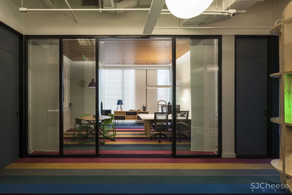 空间的颜色图表有助于构建尤斯的身份,就像在地毯上设计的那样,为每个空间带来个性。照明项目的发展带来了温暖,并强调其有趣的方面,这个企业。在前台附近,优色的logo会根据员工的心情进行相应的颜色变化。情绪数据由一个可以全天回答的问题系统收集。在厨房,面对门廊,天花板上的LED灯,可以改变舞池的空间,强调这两个空间的聚合。整个项目的设计是为了达到可持续的解决方案,例如从材料的选择,到优先级的最大化,国家解决方案和具有经济效益的照明。空间设计旨在促进在那里工作的团队之间的聚集。