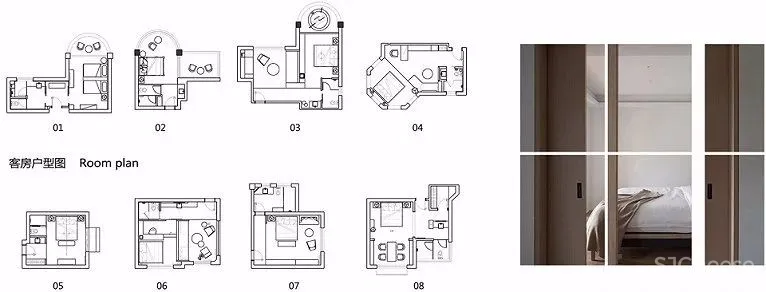 在每一层中间以中岛作为过渡,对应每一个房间,即协调客房的动线关系,又给每一位入客人提供便捷的交流空间。为与都市建筑保持距离,以原木为主基调,营造家的氛围与舒适感。