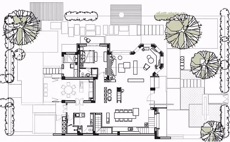 偏离设计工作室在对场地的多次解读后,从功能的角度考虑,将一切简化,以纯粹的状态出发,在现有的建筑界限内,将空间介入,以此打破既定状态。由内向外,通过重新组织空间的大小,高低,纵深关系,以此呈现出当下的状态。