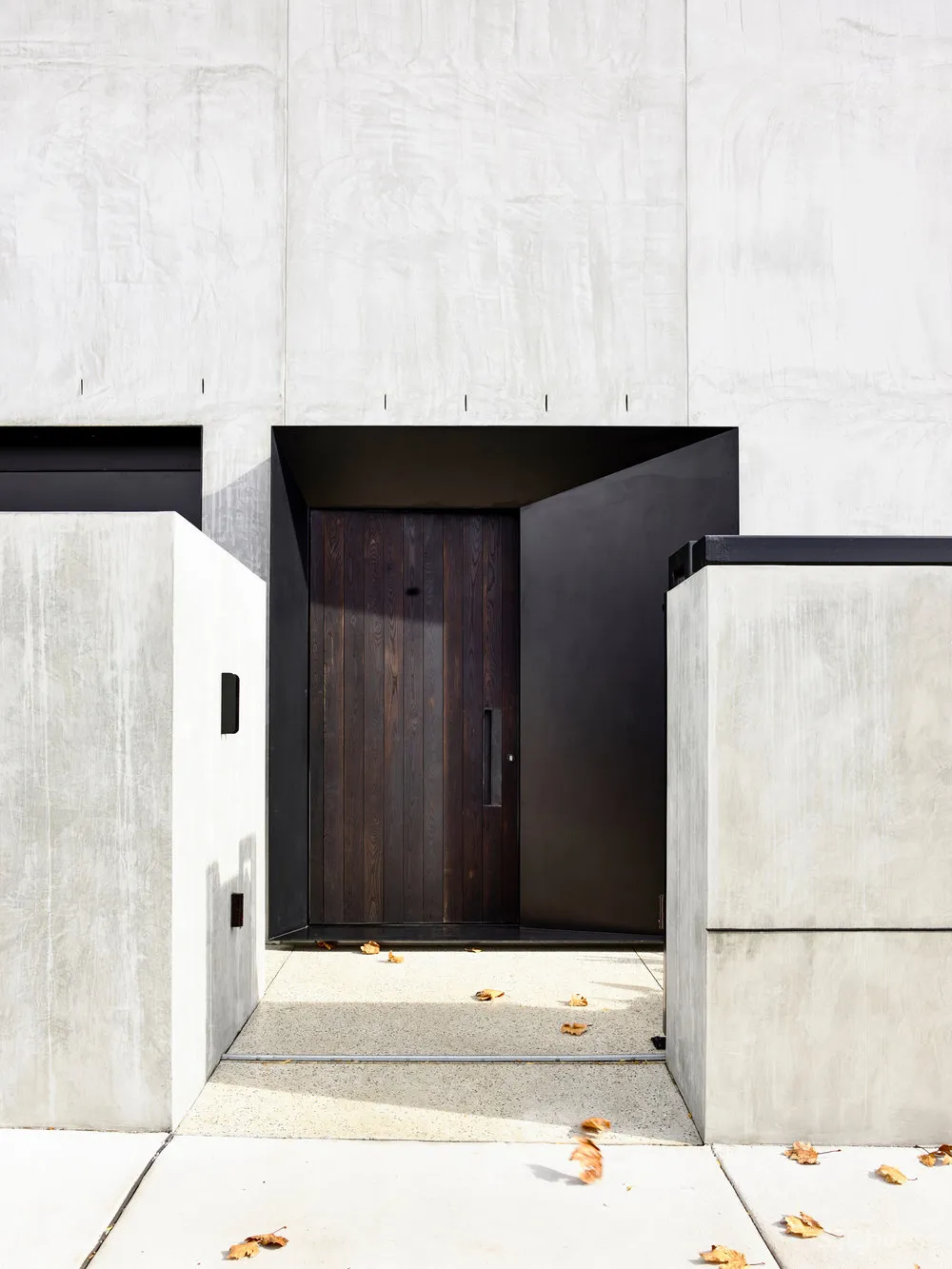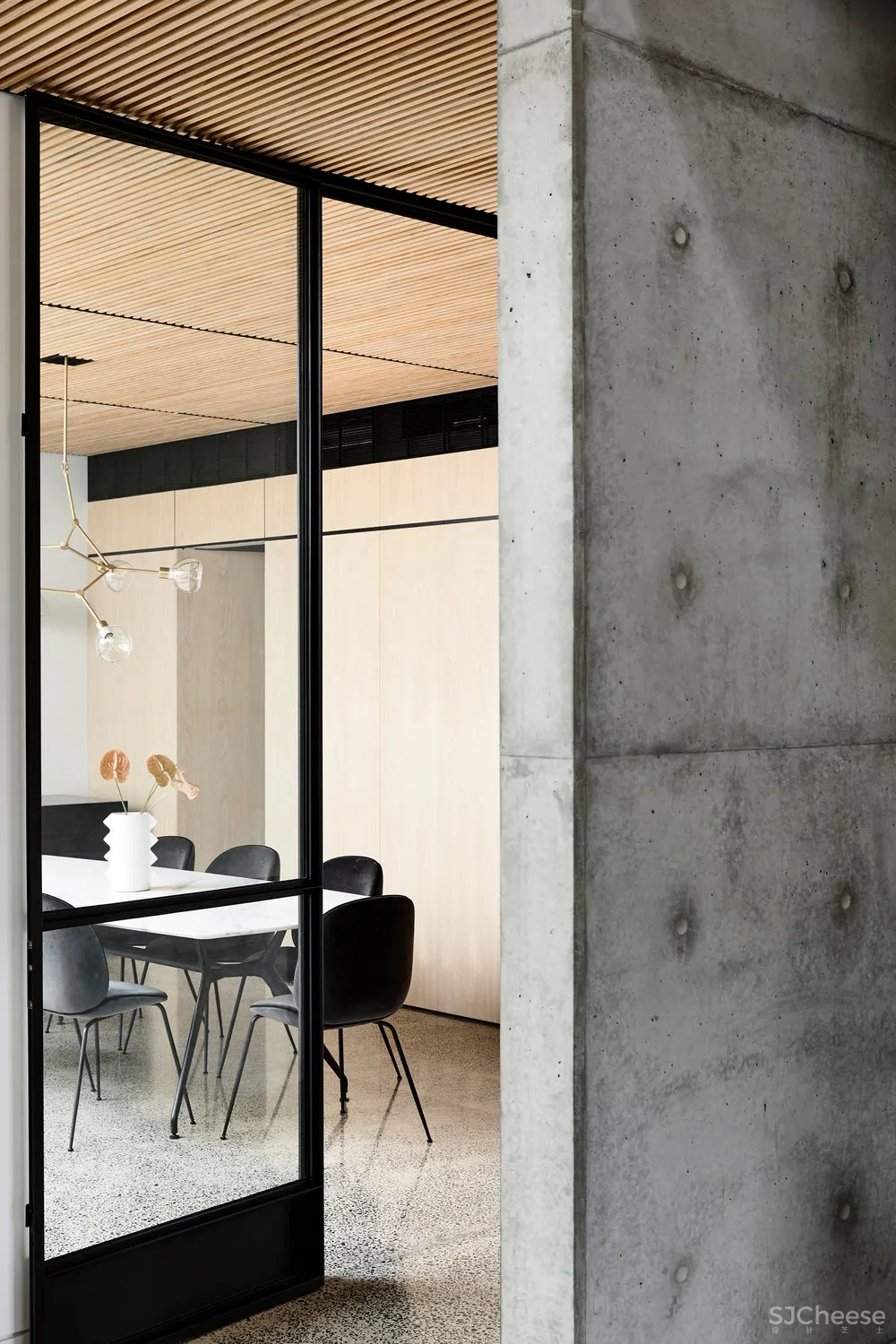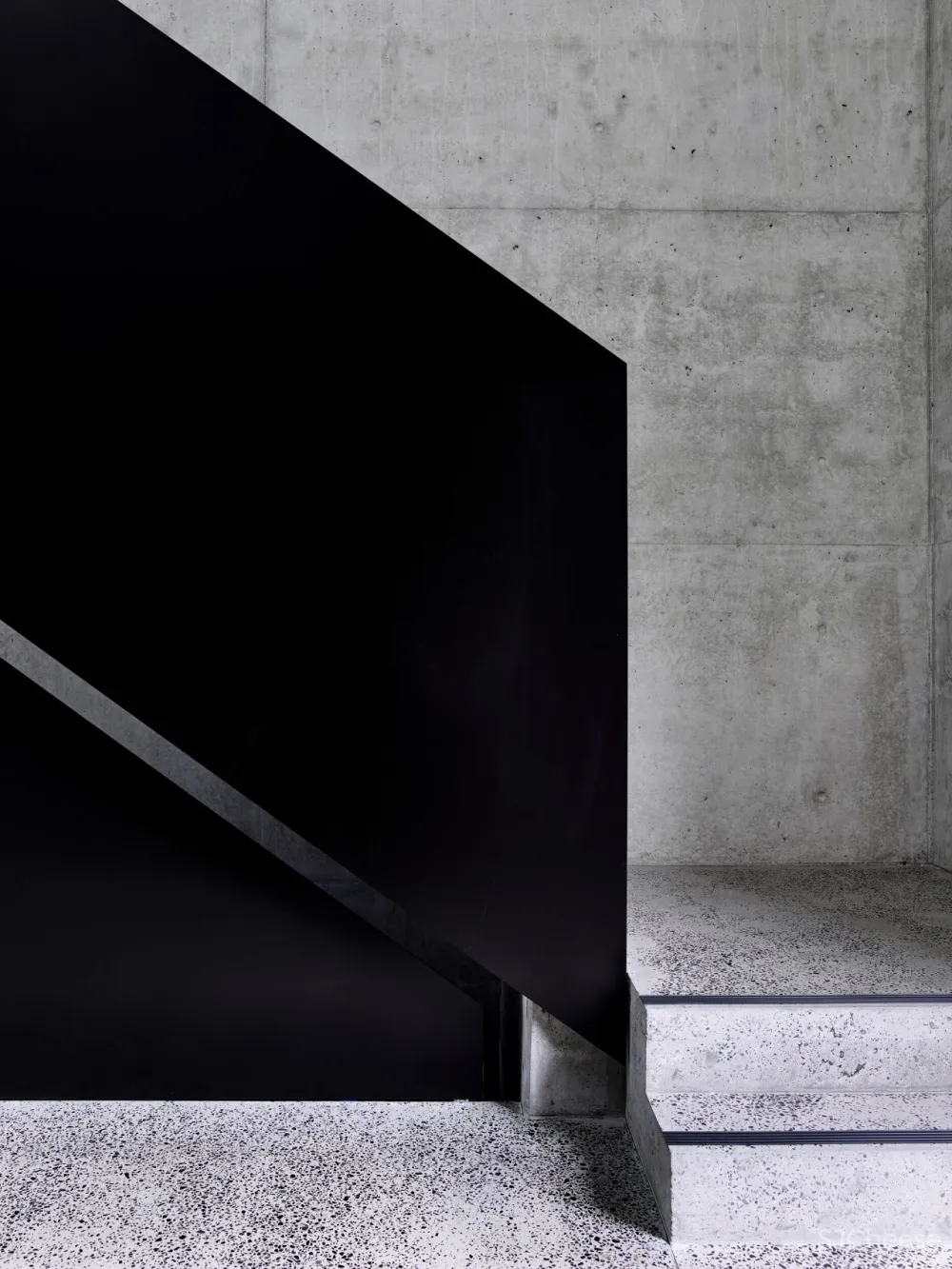 内墙采用清水模结构,再辅以天然木材和不同材质的黑色饰面,营造质感丰富的内部空间。
