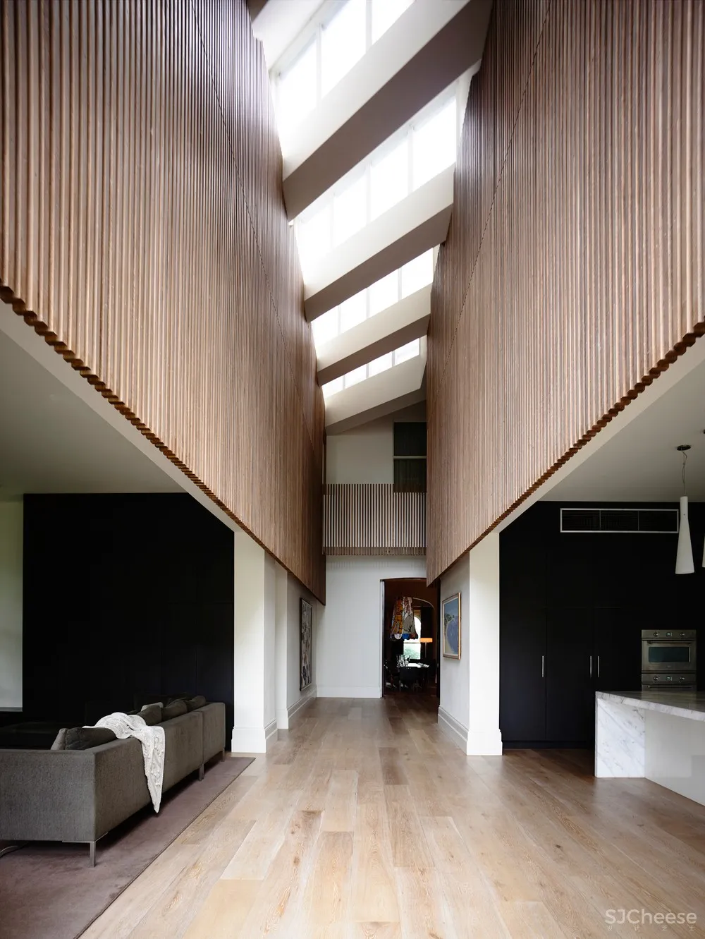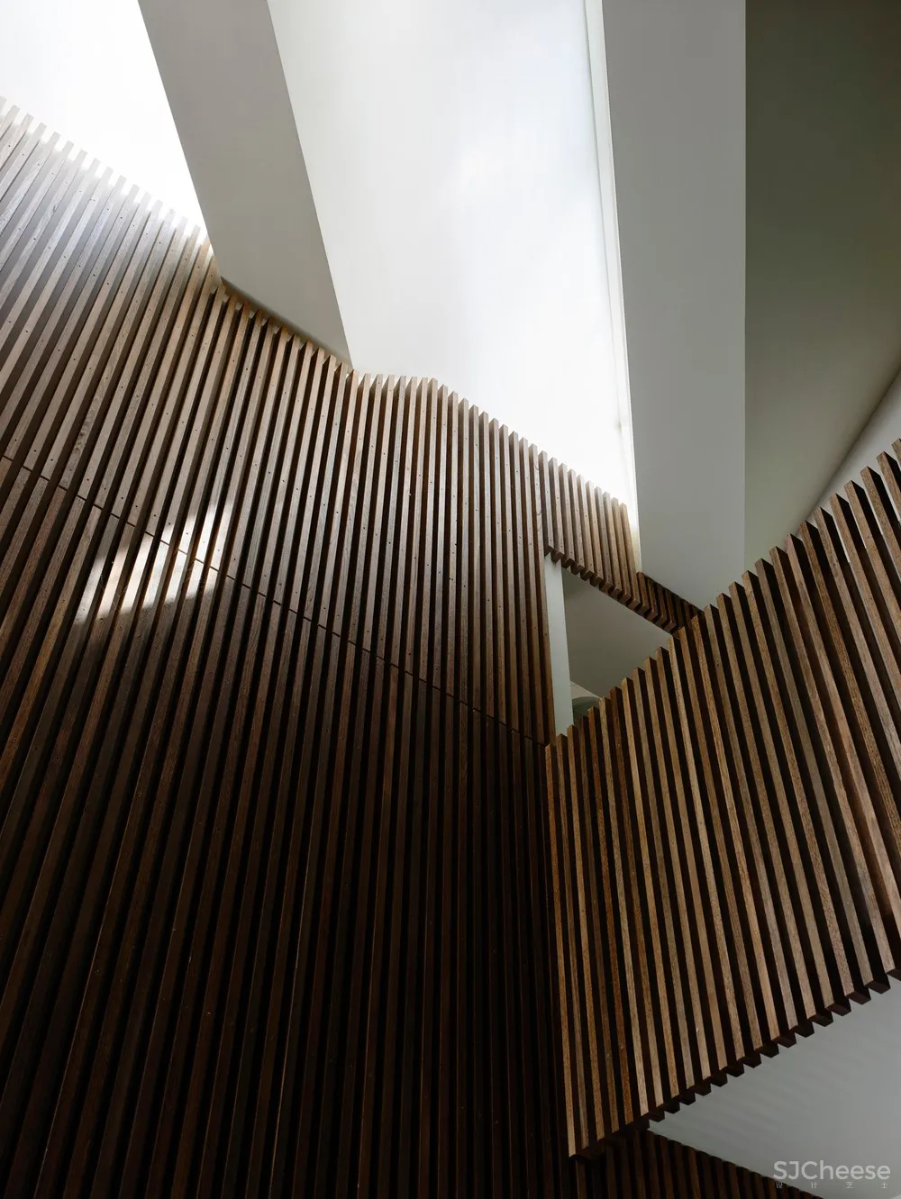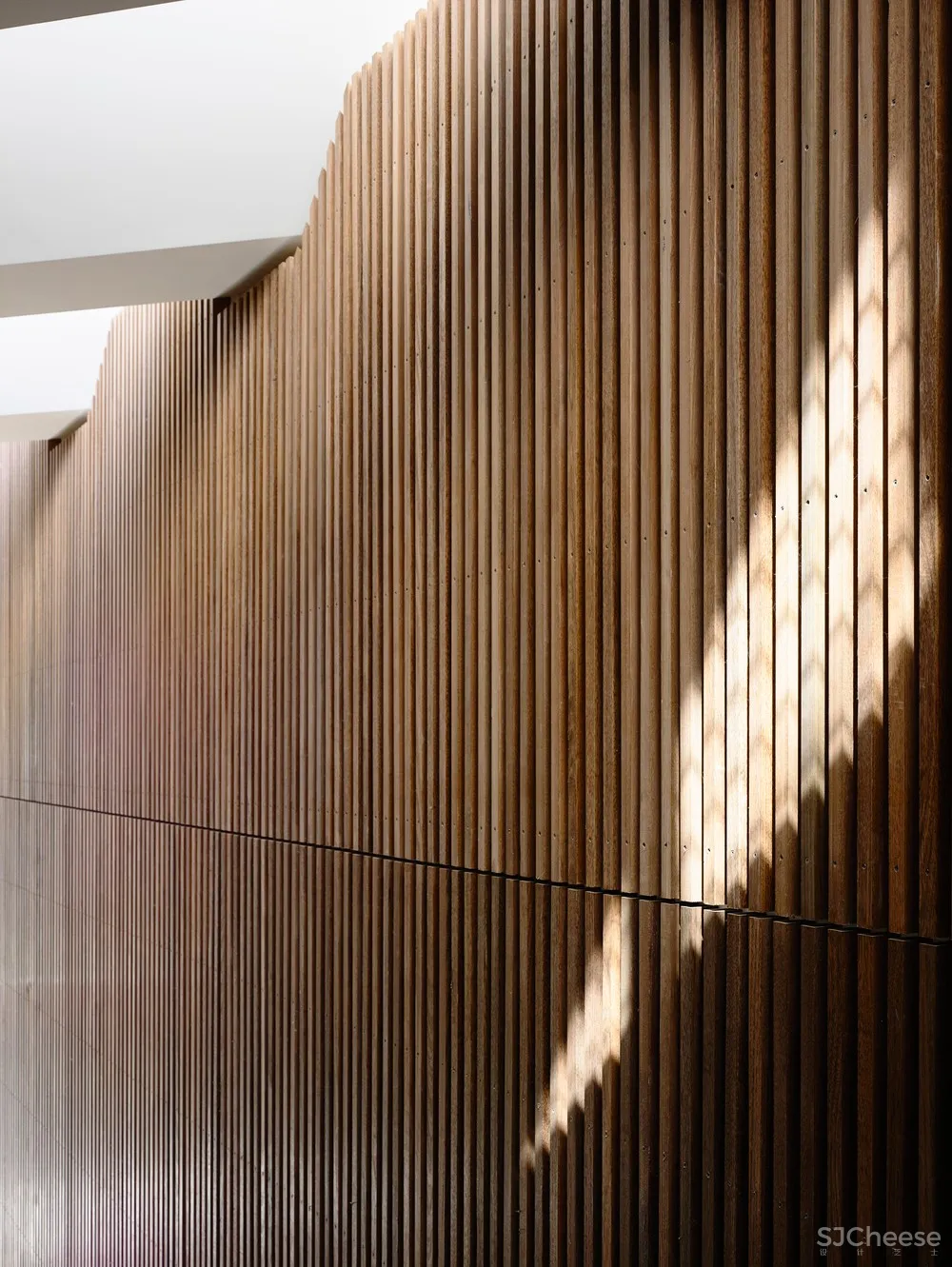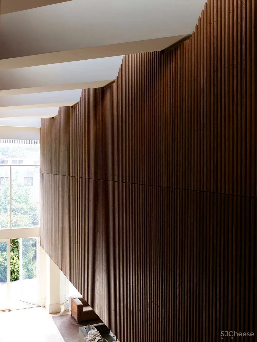 整齐排列的木板条为简单中性的内饰带来精致现代的风尚。