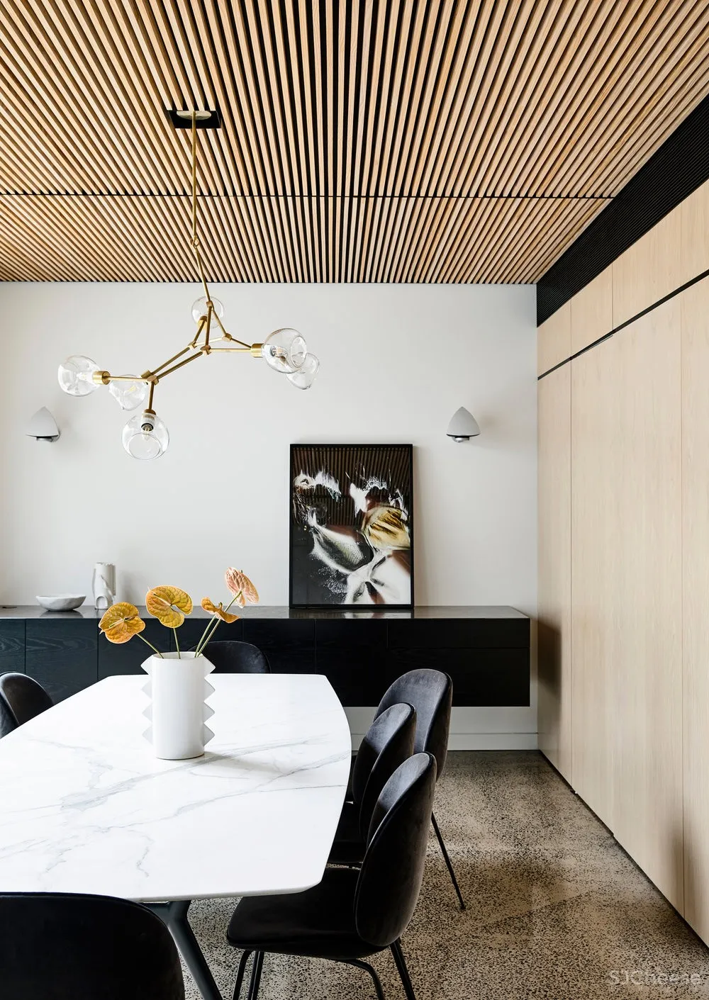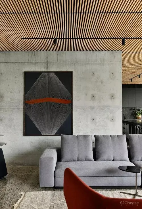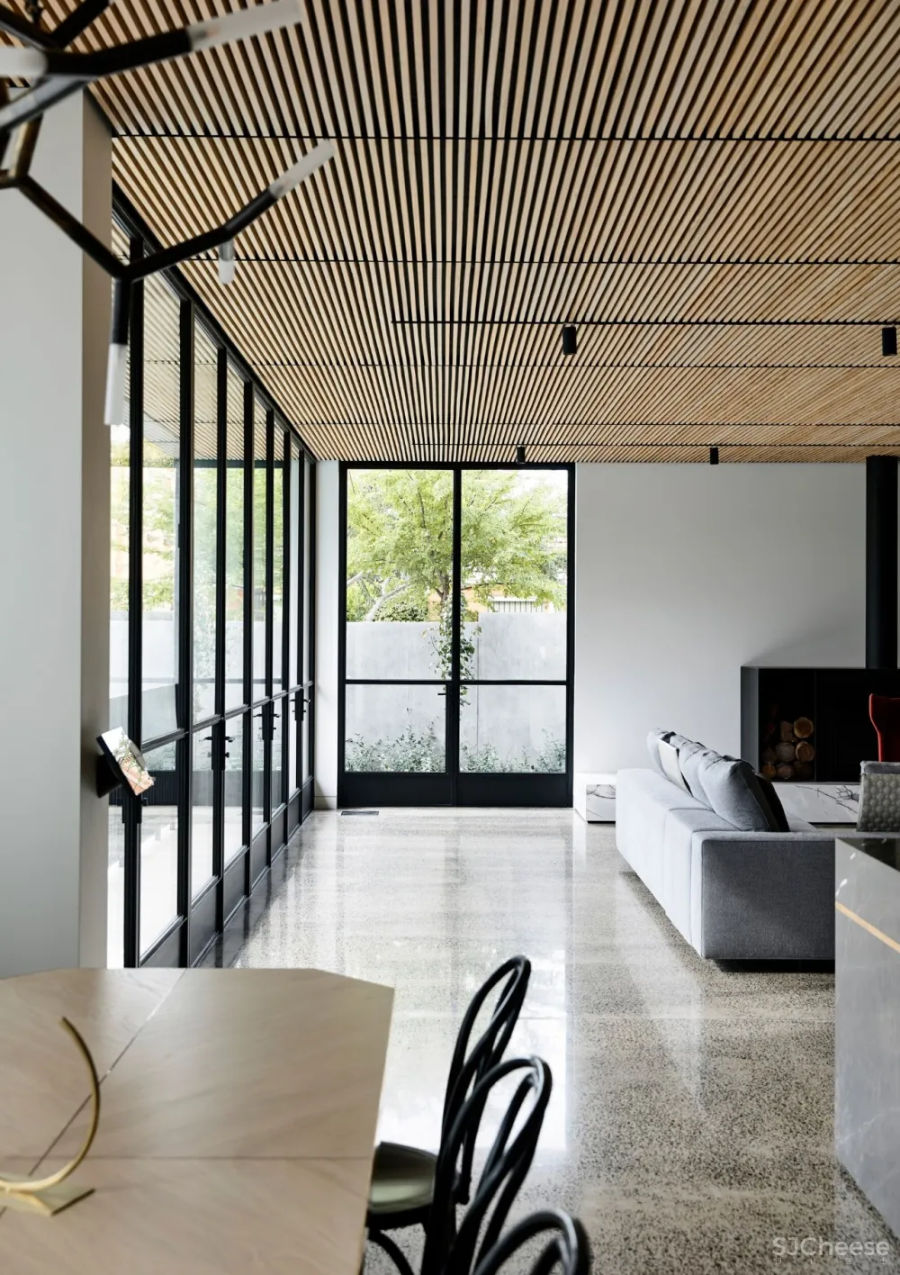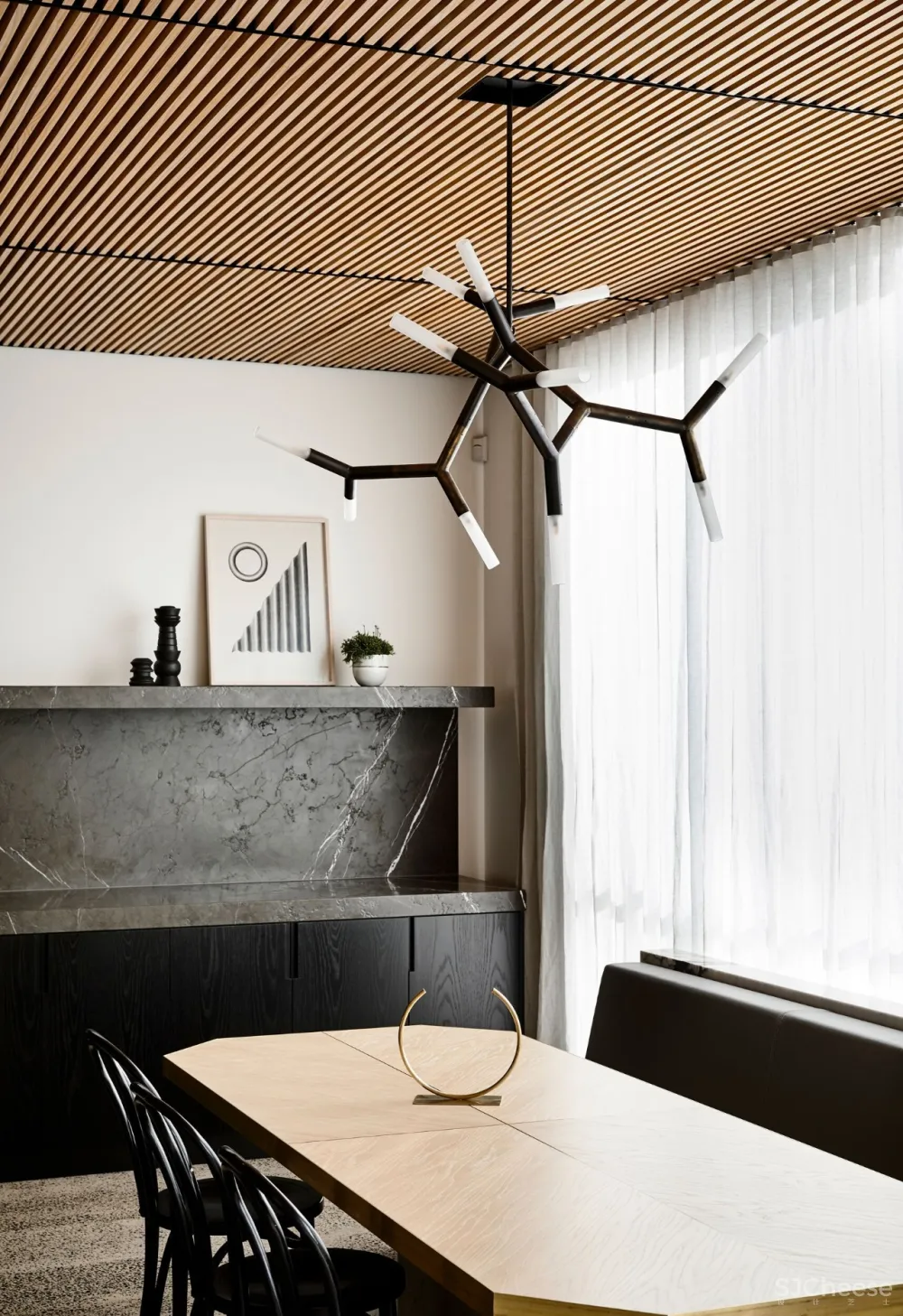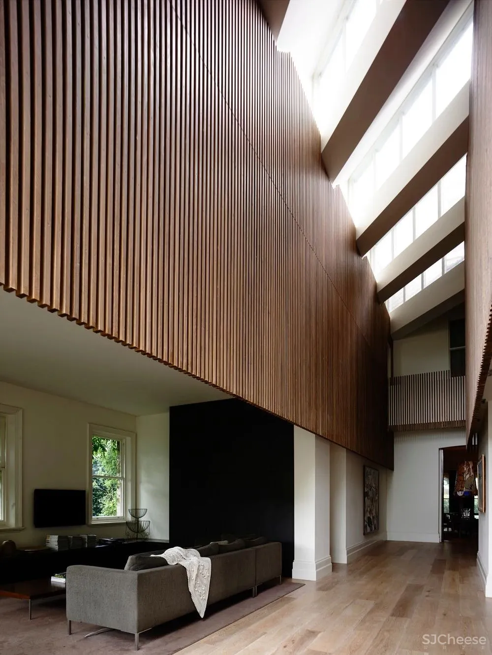 整齐排列的木板条为简单中性的内饰带来精致现代的风尚。