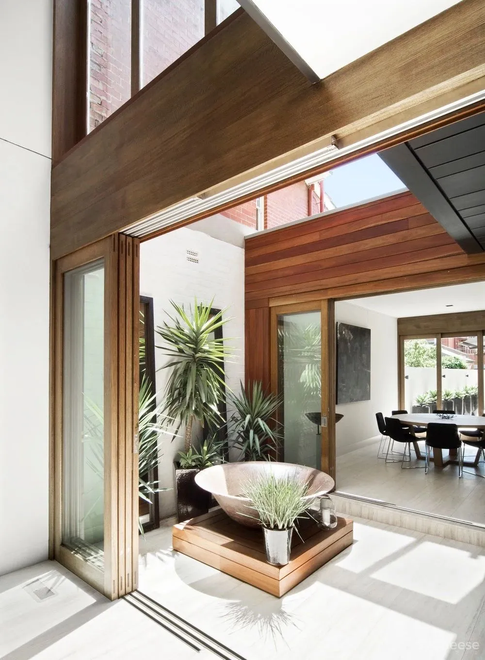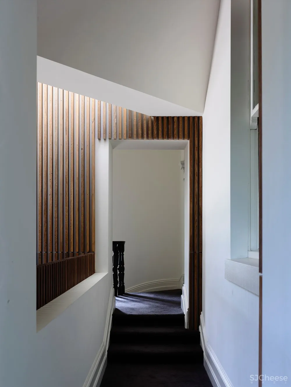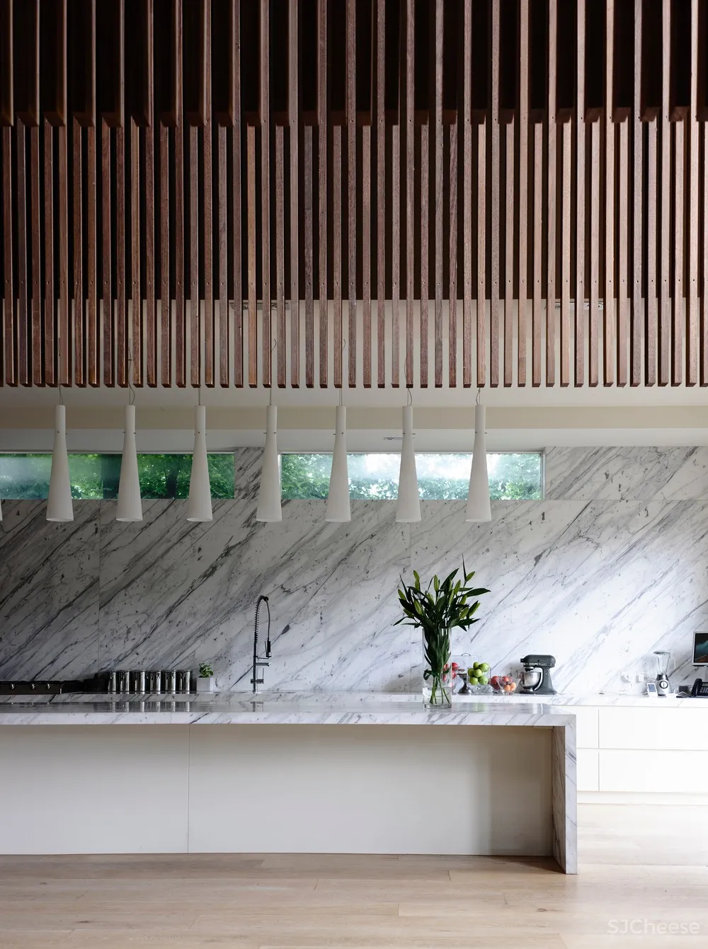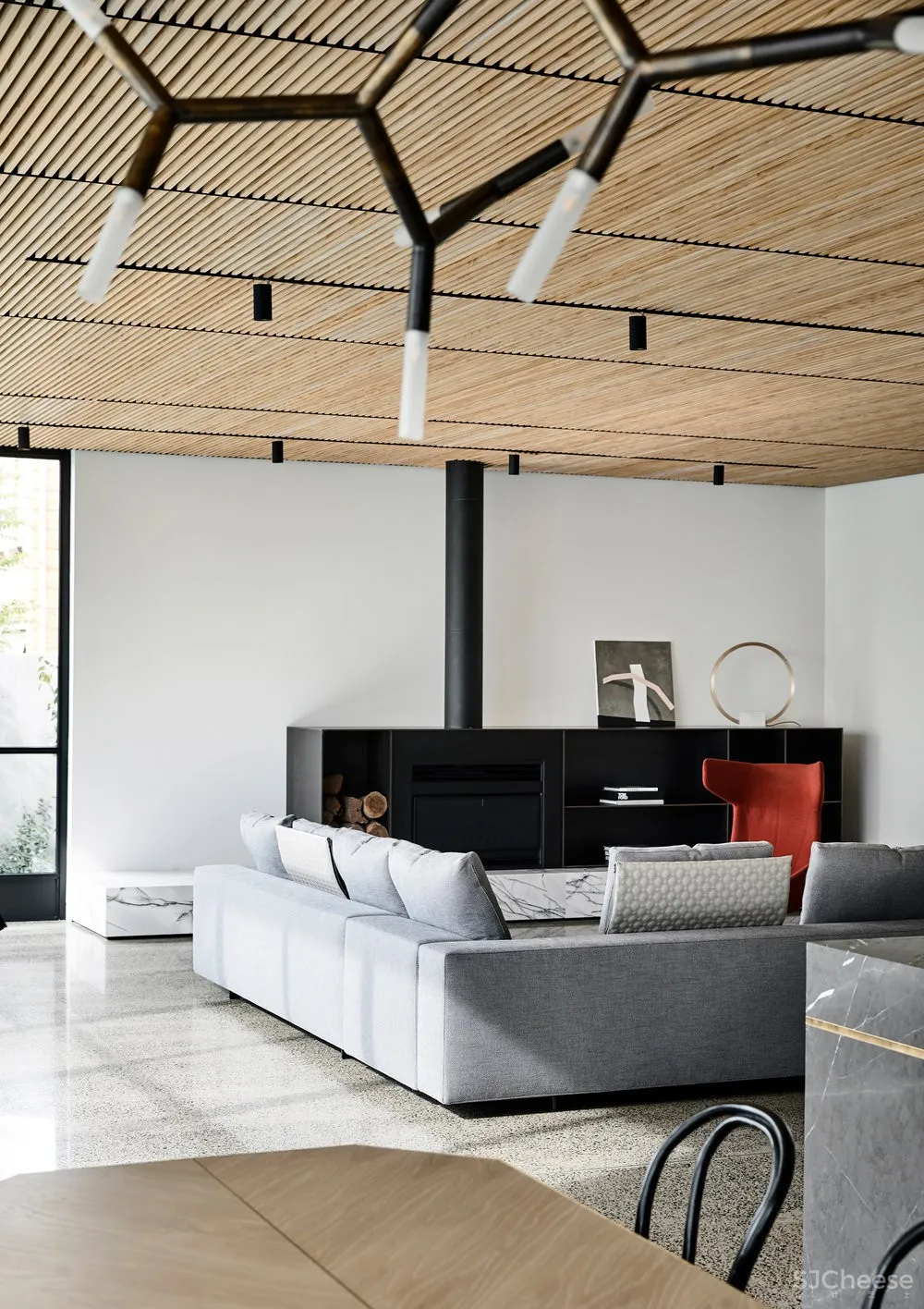 整齐排列的木板条为简单中性的内饰带来精致现代的风尚。