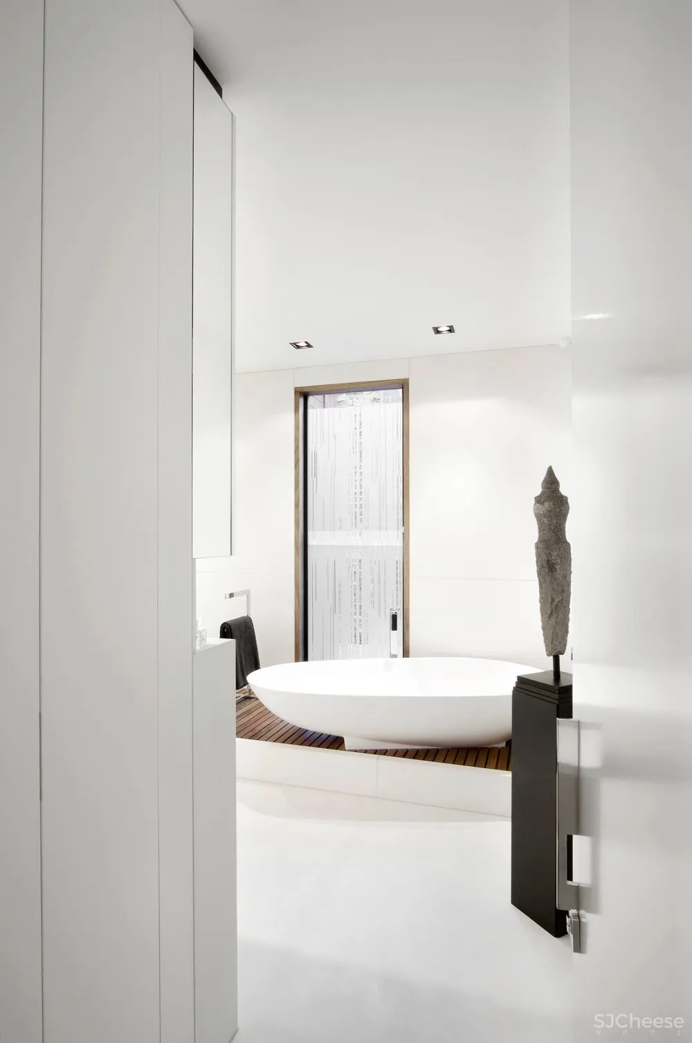 内部以经典的黑白色块为主,超大的进深结合房间里充足的自然光,营造充满生机的环境。