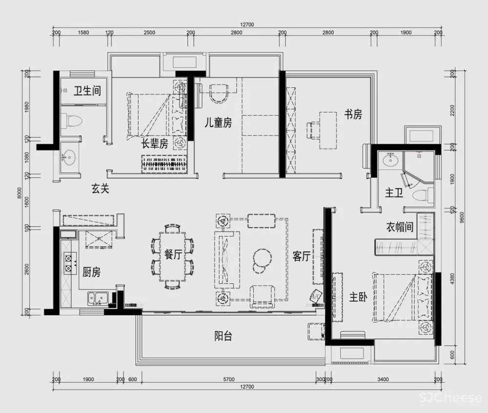 美国建筑师沙利文曾经讲过:“形式由功能而来”。空间中的功能性设计由生活而来,不为对立而生,互为因果相融。阳台大面积的落地玻璃,让空间显得更加现代而敞亮,阔达、谦虚、美好,以开放、自然的胸怀拥抱世界。