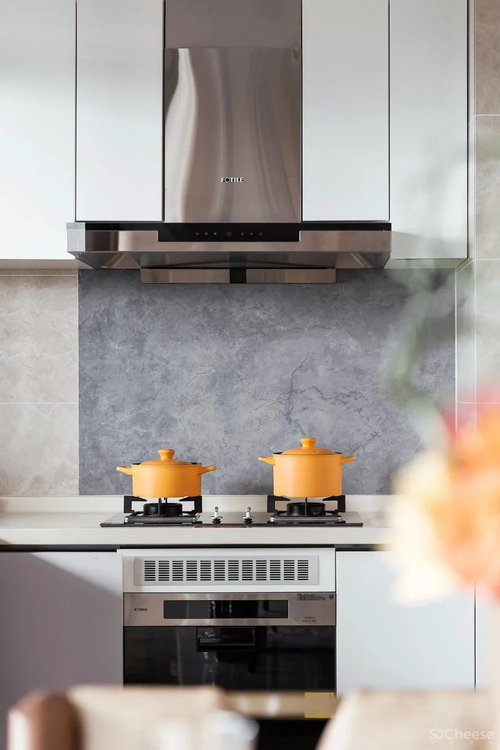 半开放式厨房进行视觉性的精心布置,生活源于便利,忠于功能,强于细节,但家又是一个需要视觉享受的空间。春去秋来,晨昏日暮,泰戈尔说,让我的爱像阳光一样包围着你,又给以你光辉灿烂的自由。有家,便有自由。