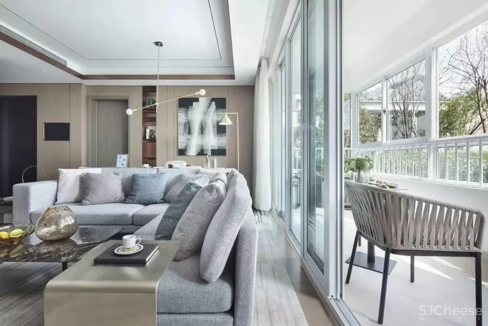 阳台作为客厅的重要补充,触及自然,让四季美景在家中无处不在。搭配休闲桌椅,营造了度假般的惬意。