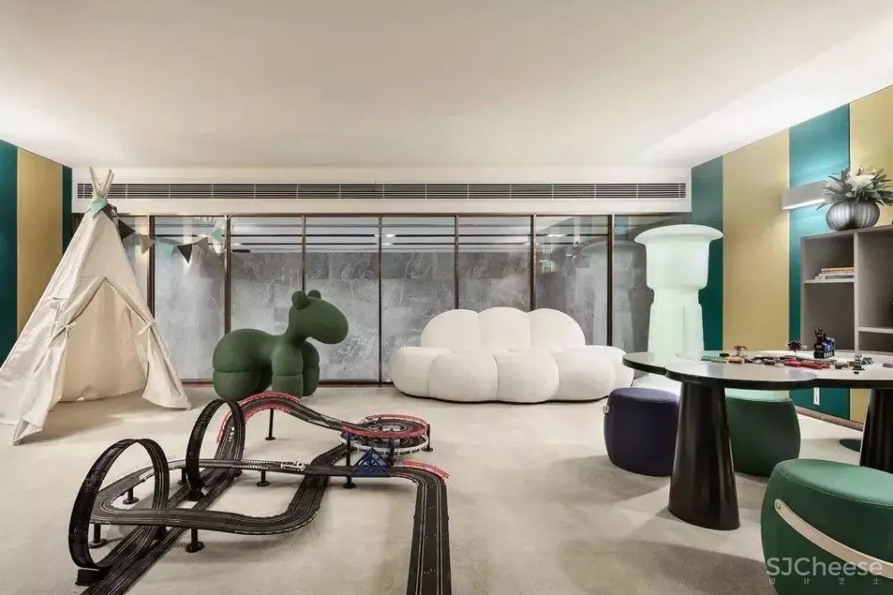 原文始发于微信公众号( 室内设计秀 ):260㎡亲子样板 | 让空间沉淀时光的暖意