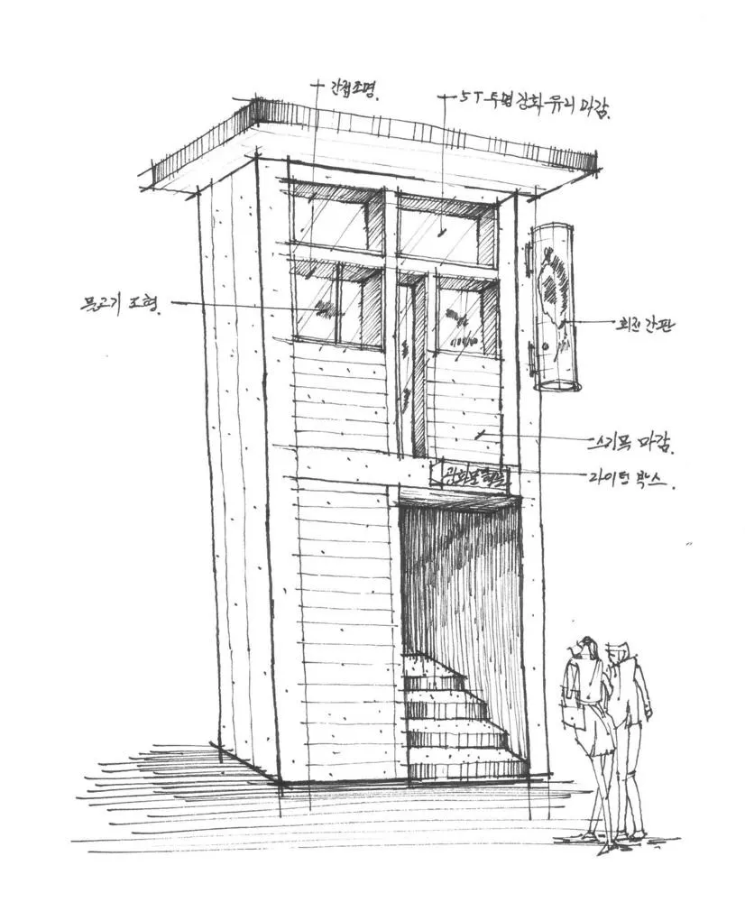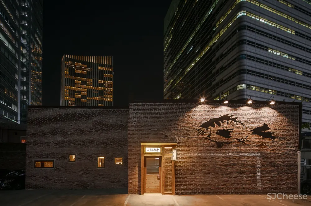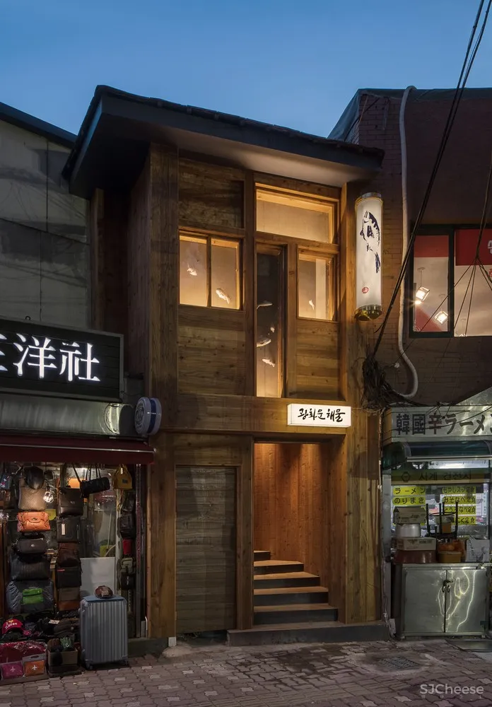 这家供应光化门海鲜的餐厅始建于1940年。我们希望光华门海鲜餐厅可以成为 Jeong-dong 区的一张名片,在这里,现代与传统共存;同时我们认为海鲜餐厅在20世纪40年代既是现代的也是当代的。所以在我们开始打造传统的空间形式之前, 我们首先融合木制的天花板、内部和外部使用的金属结构材料以及其他现代设计元素。