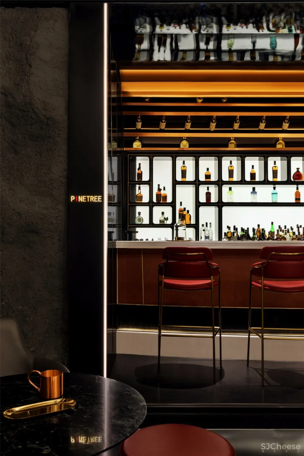 PINETREE柏吧是一间带有爵士风格的清吧,小众而富有质感。小众不是因为它面积小,而是它试图以设计的手法让空间体验更为别致。质感则是相对材质、品味及空间氛围营造而言,精致与粗犷融于一体,典雅与质朴相得益彰,充满着后现代主义的审美况味。