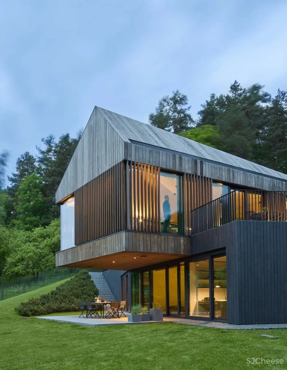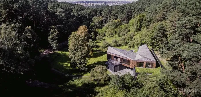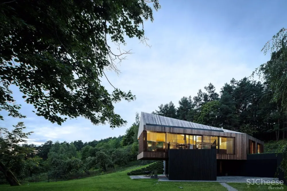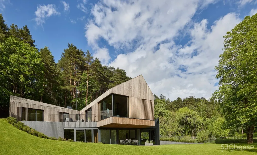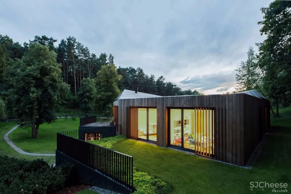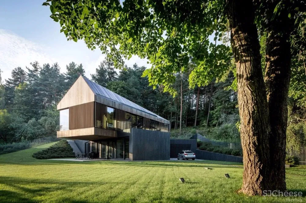 立陶宛传统民居的主要特点是简洁的体积、双坡屋顶、木制百叶窗,因此这栋别墅完美的诠释了传统的建筑风格。