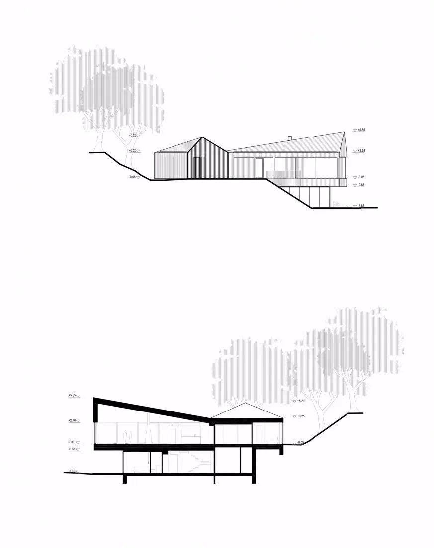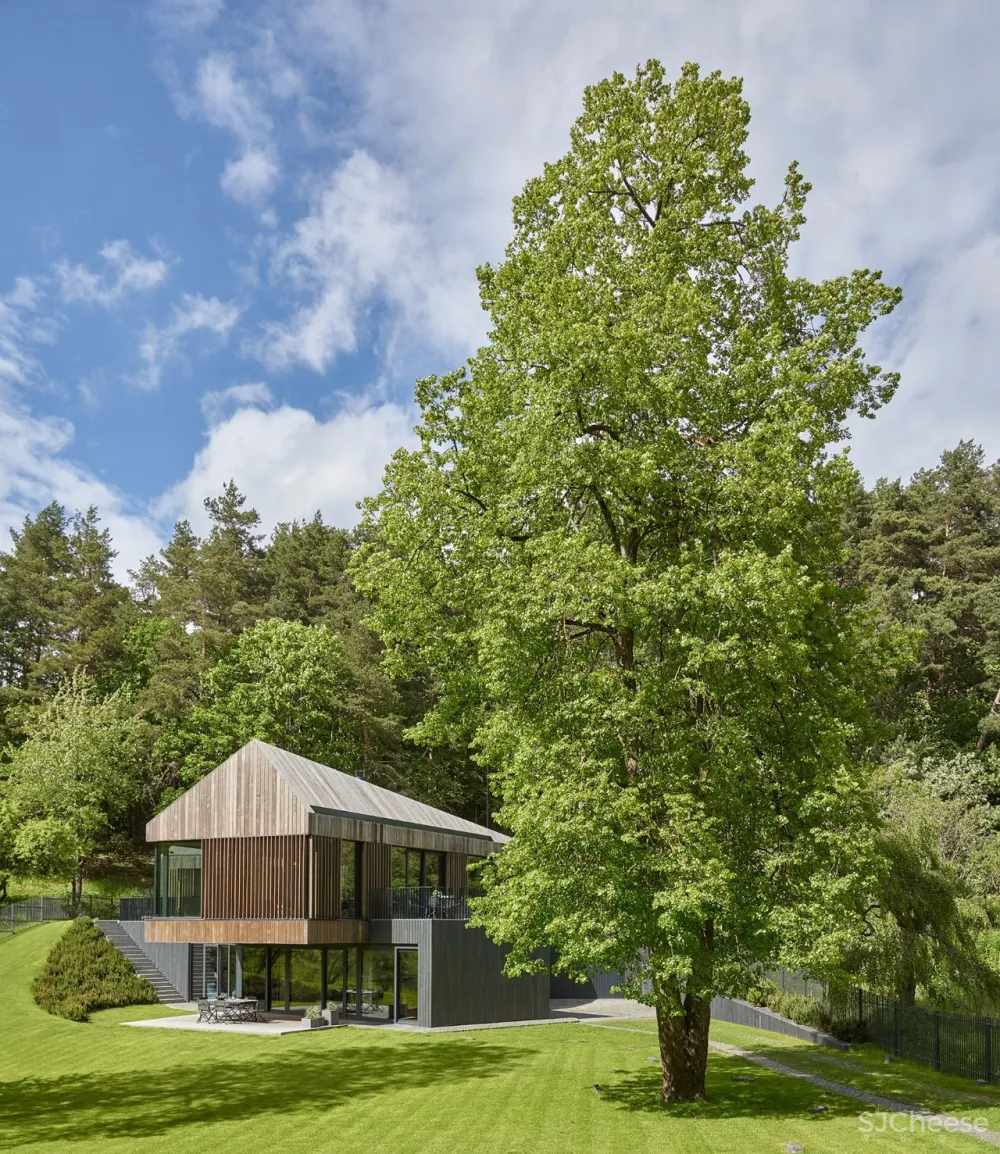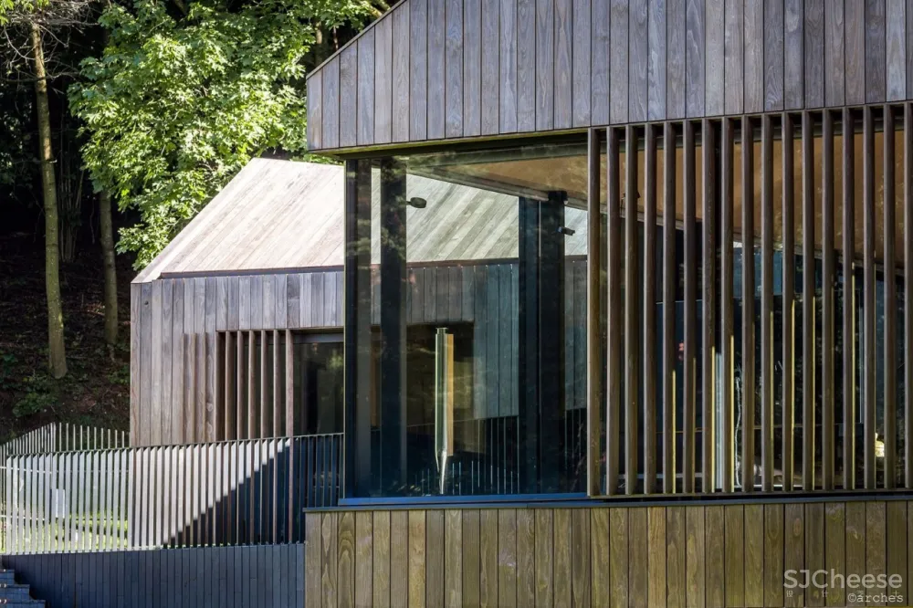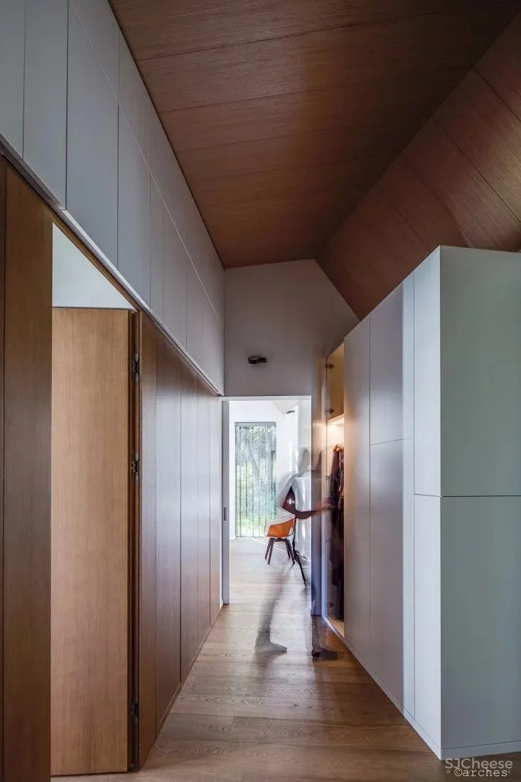 立陶宛传统民居的主要特点是简洁的体积、双坡屋顶、木制百叶窗,因此这栋别墅完美的诠释了传统的建筑风格。