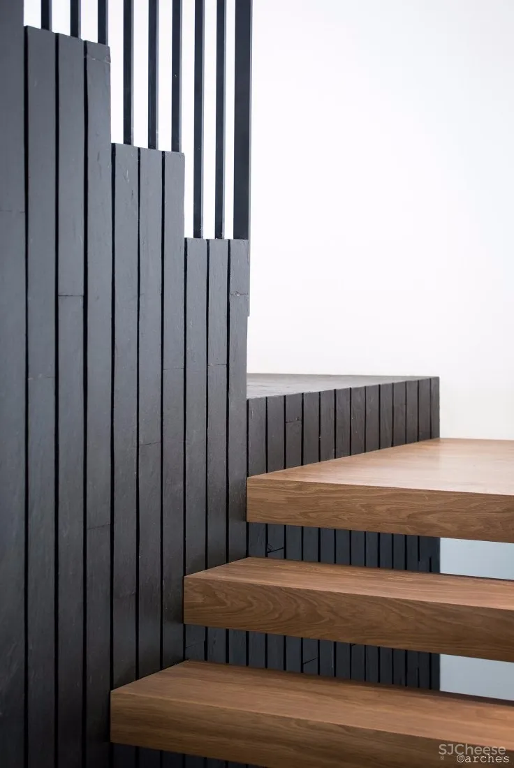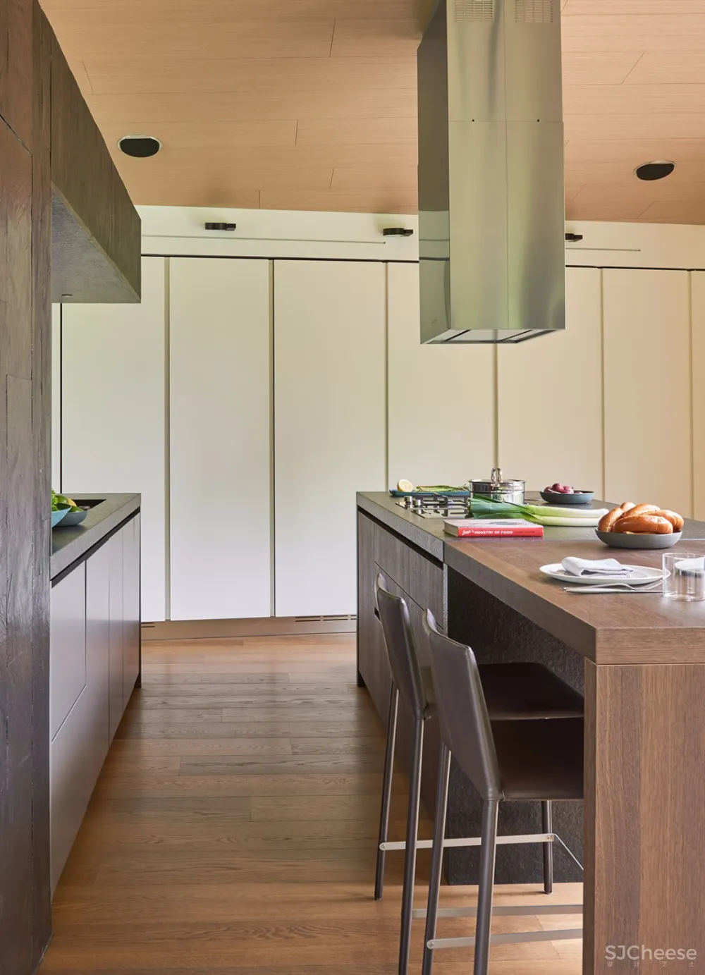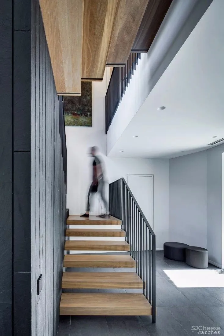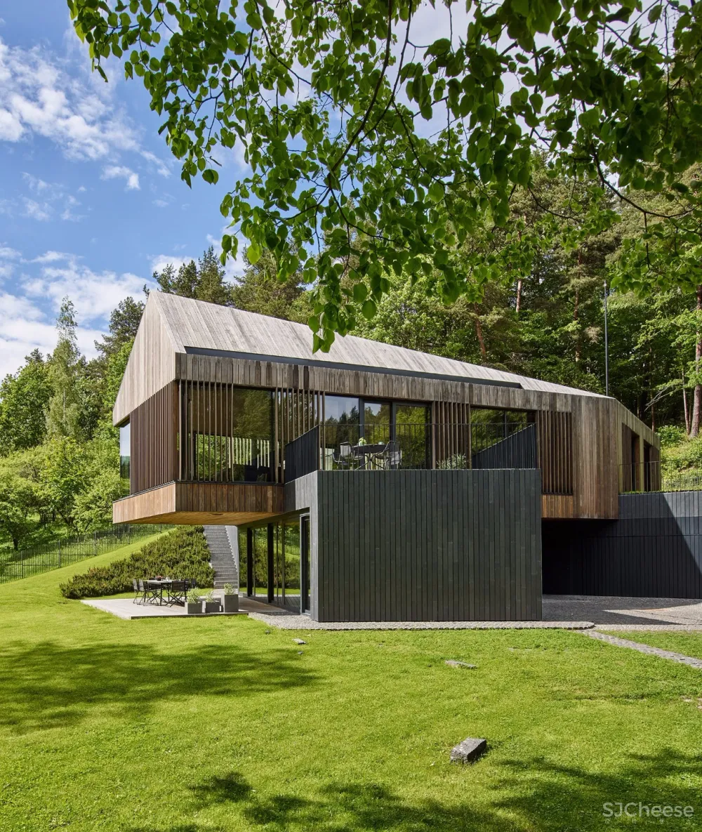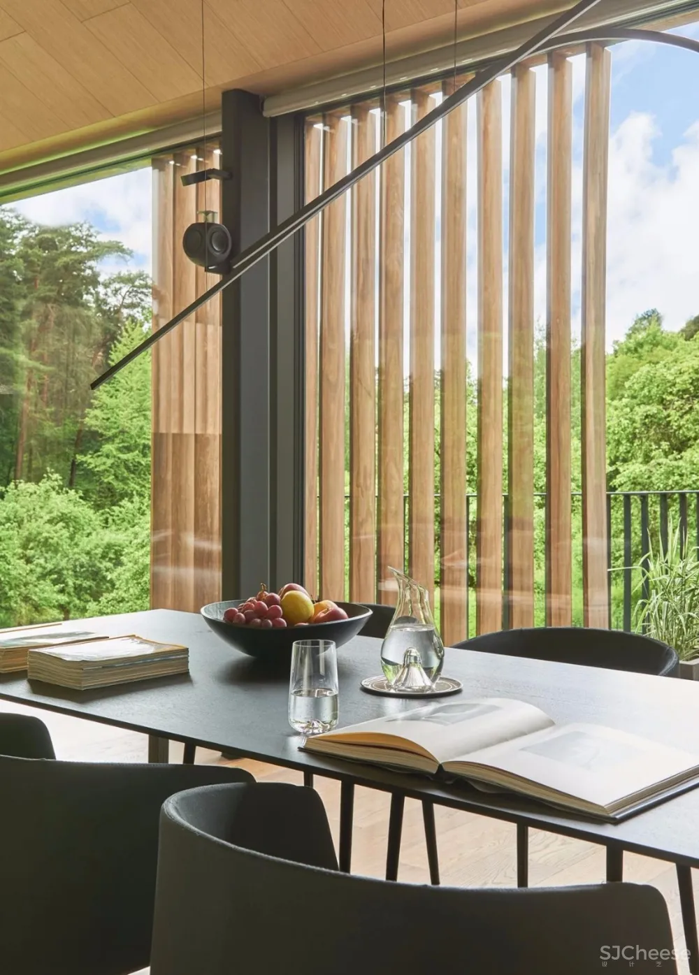 干净、棱角分明的设计营造出简约的外观,Kebony作为主要材料,与建筑物底部的黑色板岩形成鲜明对比。不同的形态,人性化的比例,玻璃和木材的和谐运用,都营造了一种轻盈的感觉。