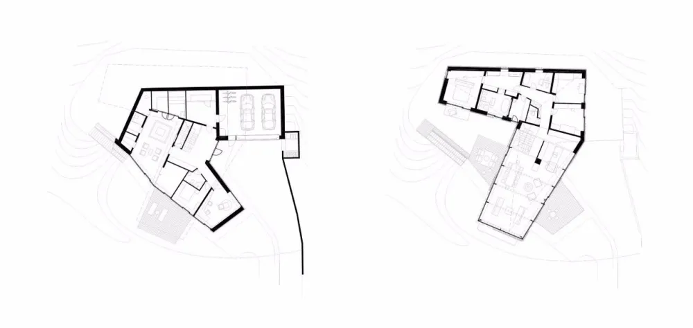 所有主要的室内空间都可以出入庭院,庭院布置在不同的层上,创造出完整的私密感。