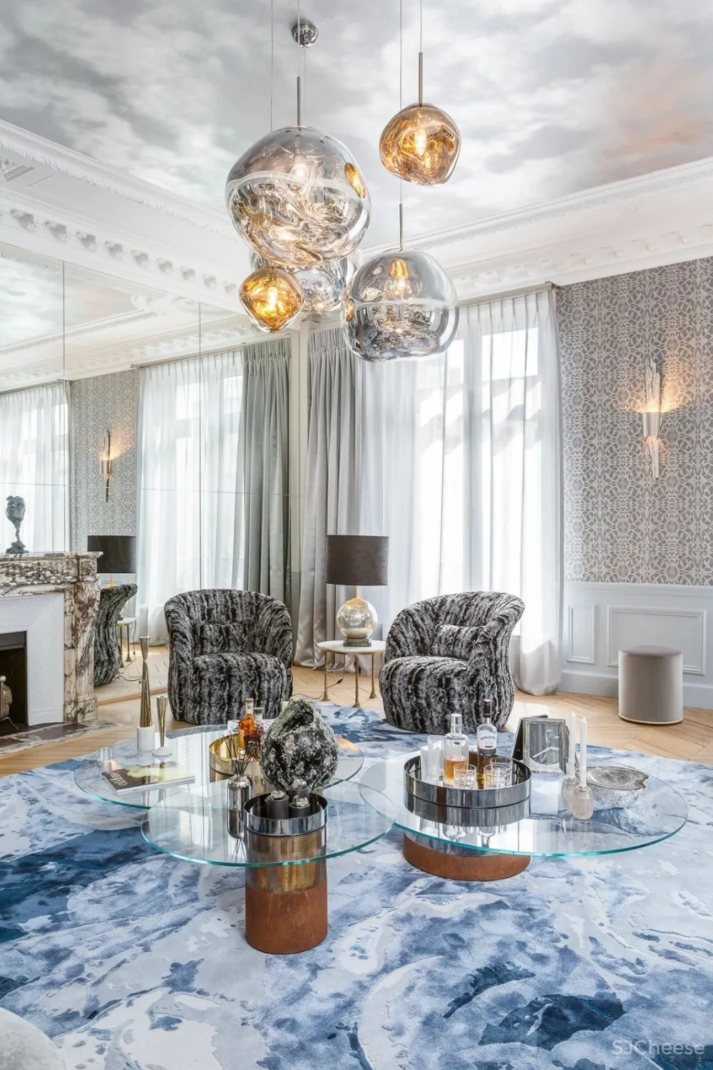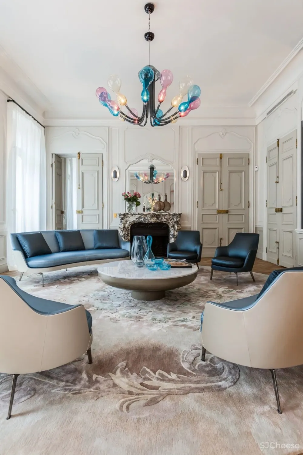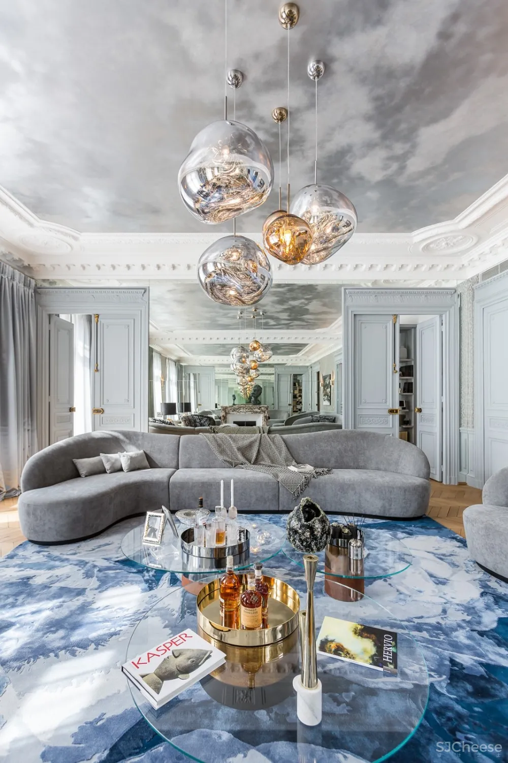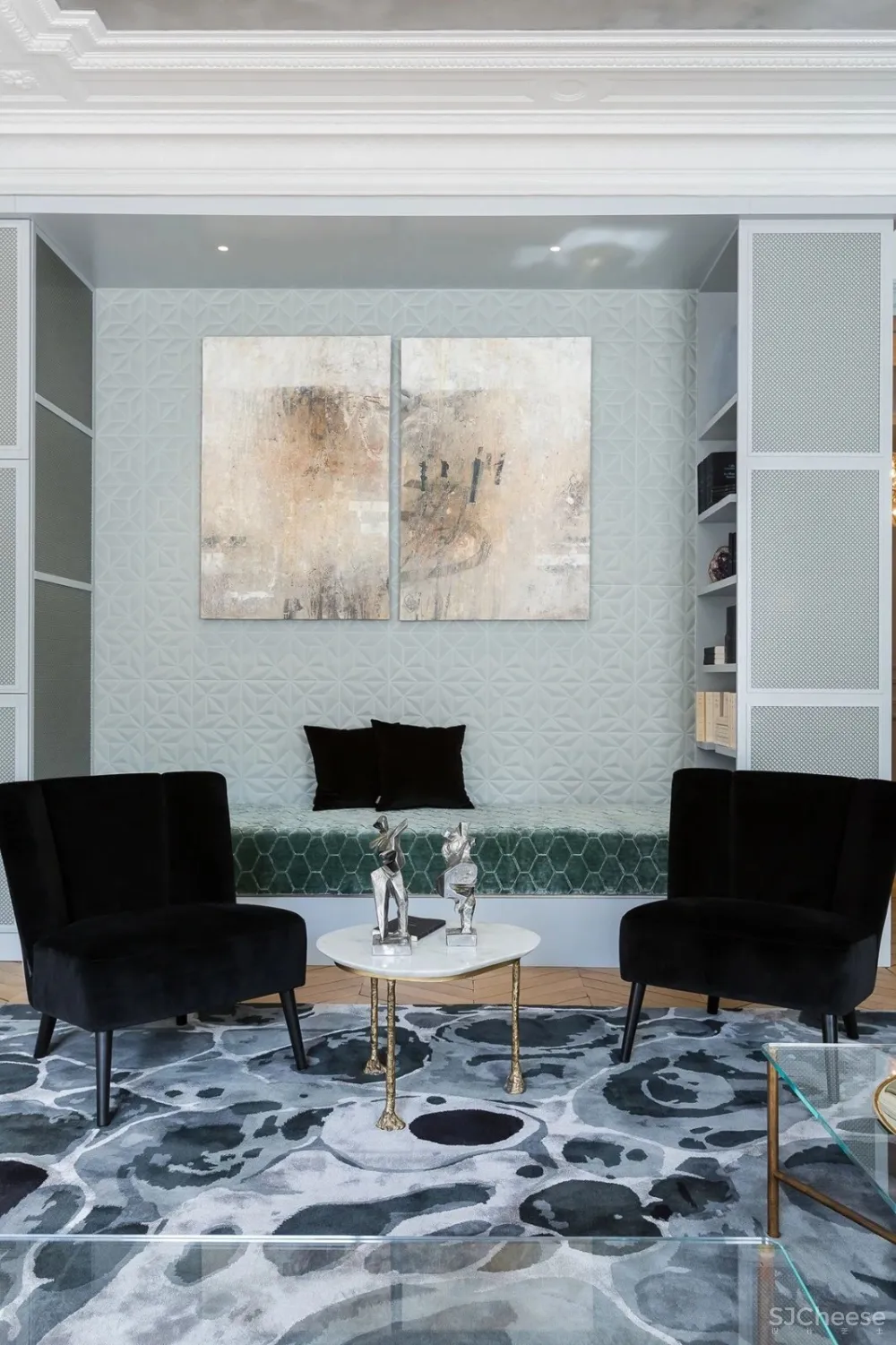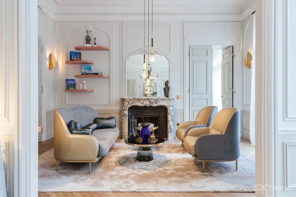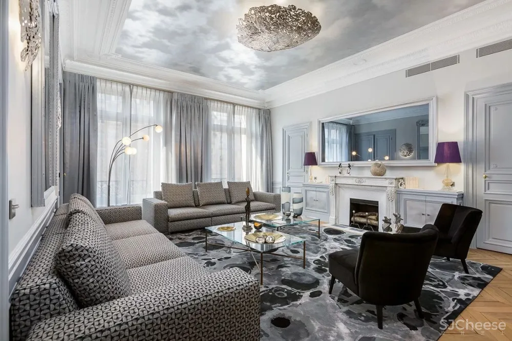 这个位于Marceau大道,可近距离欣赏凯旋门的272平方米高端公寓内,他利用充满自然光线的“艺术之家”发挥了他的神奇作用。
