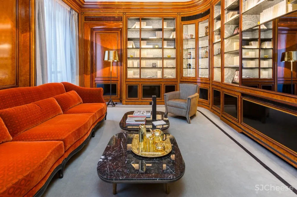 在原有的设计框架上,Gérard Faivre决定保留一些过往的设计元素,譬如木地板、门、带有内部百叶窗、壁炉、模制品、青铜锁和手柄等,以及一些壁画和彩色玻璃窗。