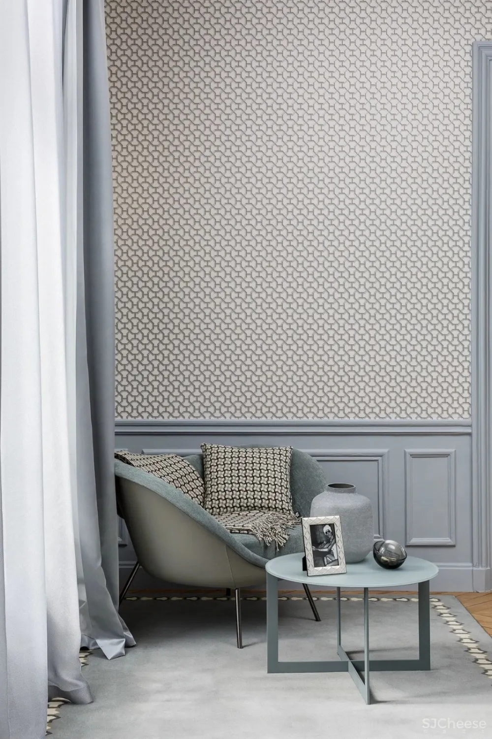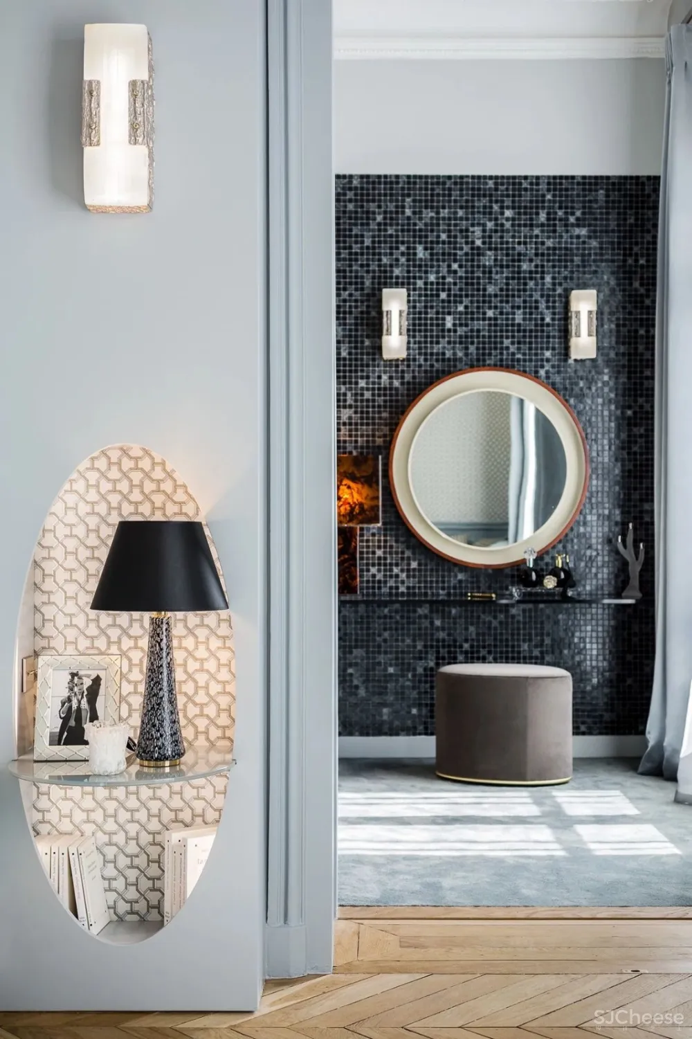 在这个家中,Faivre设法在这个现代主义和当代艺术品之间创造完美平衡。家具和墙壁上使用的平滑灰色调完美地平衡了灯光,地毯,壁炉和绘画等大胆的艺术元素,引人注目,为设计师提供了可触摸空间。