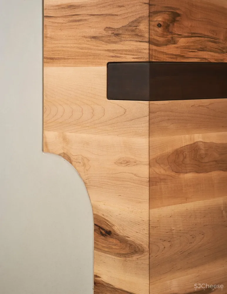 白色起伏的天花板上点缀着清晰的加拿大枫木和让人想起手工装饰的具体细节。从滚动的天花板,几何拼图台面,和定制的滴水盘,到轻混凝土的使用,允许雕塑制作技术,设计团队对工艺的严格关注是显而易见的,在餐厅的每一个特点。