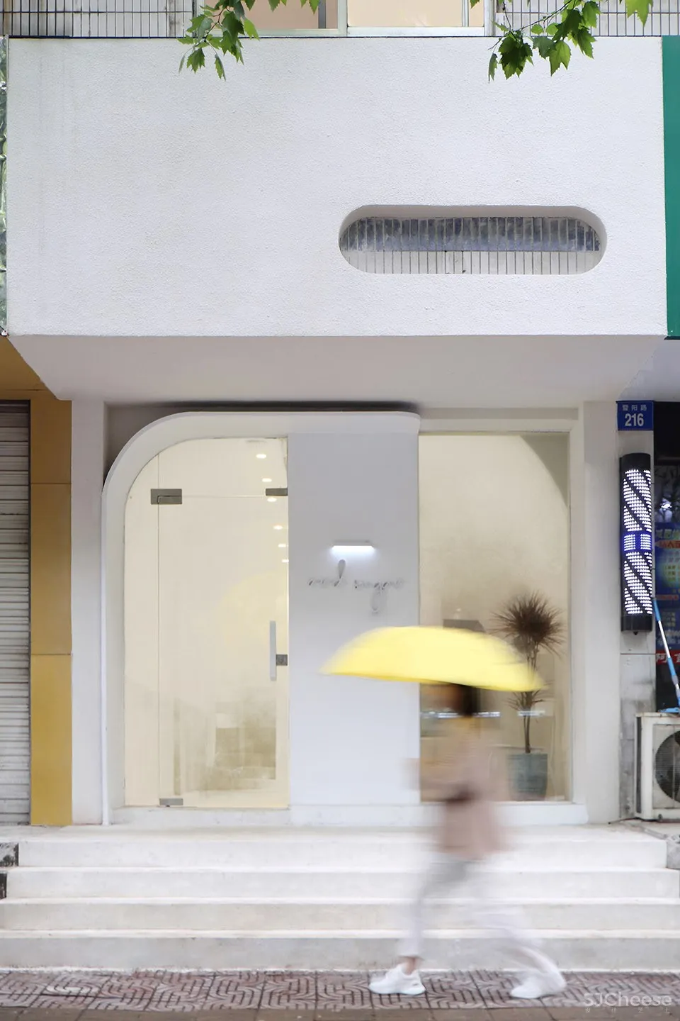 在暨阳路这条老旧的街上,有这么一间店铺别具现代设计感,那就是And Sugar,在整条商店街中格外醒目,而来访的客人也络绎不绝。纯白色的外立面、圆弧形的门、镶着透亮的大块玻璃,仿佛主动招呼着每位路过的行人进去探索。