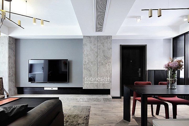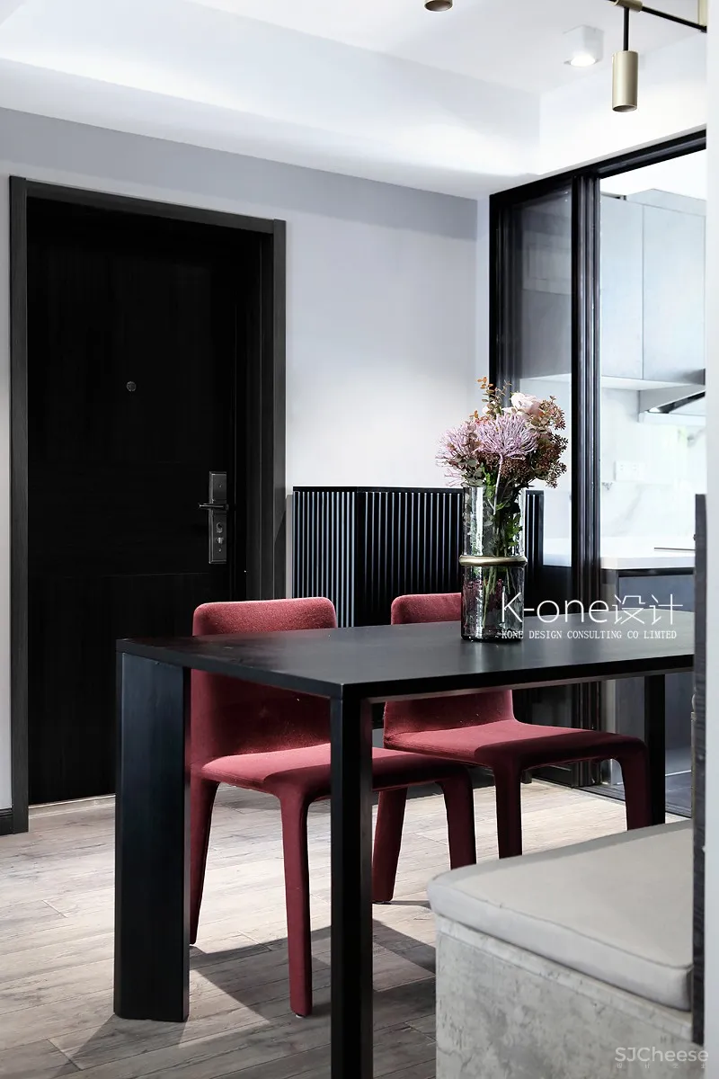 低调冷艳色高级灰搭配细腻精致的高质感黑,再加上一抹跳脱的红作为点缀,打造出时尚大气的家居风格。