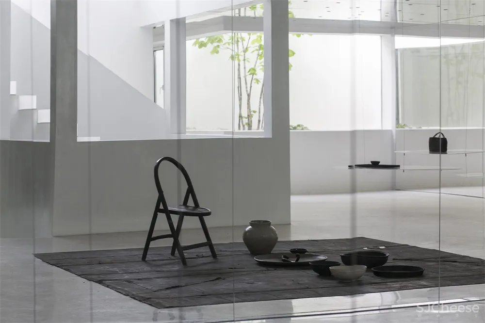 三个庭院化的空间将建筑内部立体串联起来,让室内有充足的阳光和植物景观。由胡同经一个带有天光的前厅转折进入建筑首层,这里是家具、产品的展示和售卖区。在这个镜面空间之内,人、器物、家具与植物景观相互映射,实像与镜像叠合交织于一处。