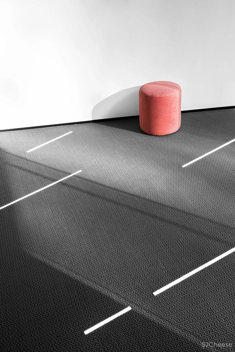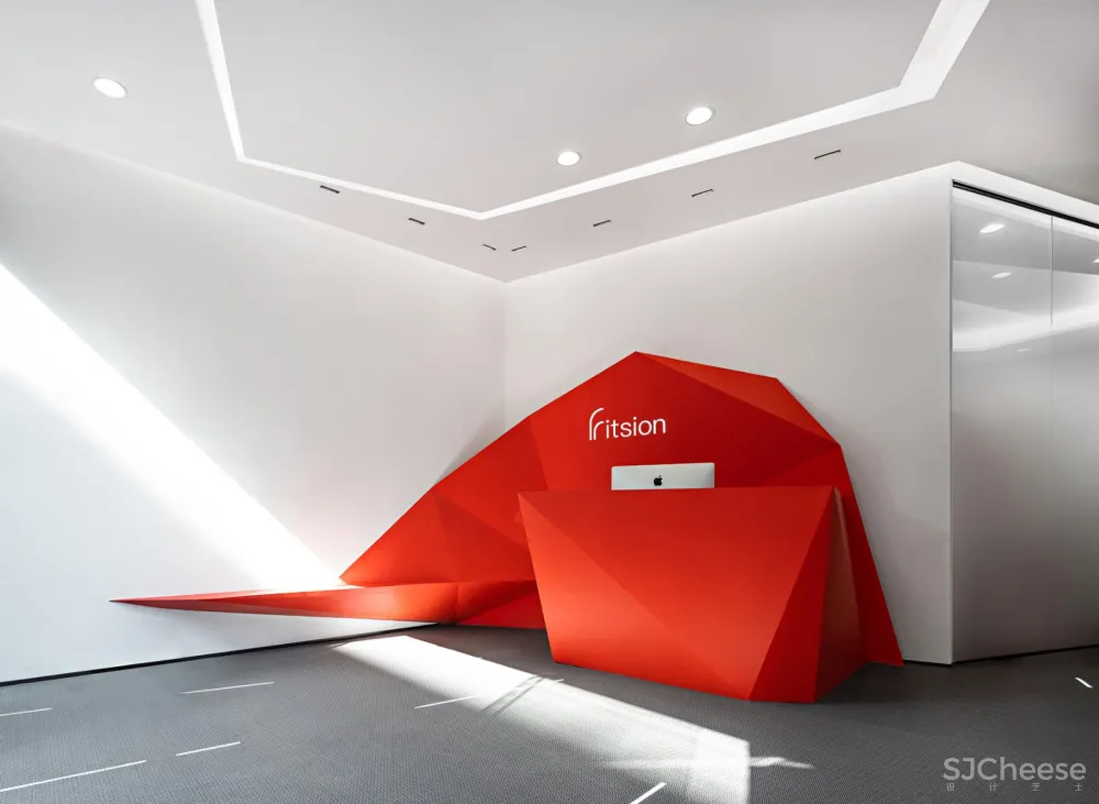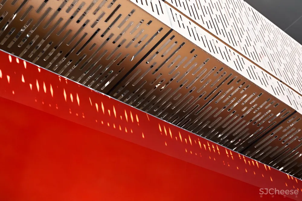 红色点缀着白色的空间,跳跃又明亮,悬浮不带沉重的。入口的前台设计隐喻为心脏的鲜活跳动,似乎发出邀约的信号,享受着那一刻的尽情挥洒。人生的枷锁通过环境的指引,视觉的感受,运动的对抗,仿佛一一打破,从而获取到了自由的力量,如漂浮在浩瀚星洋般自在。