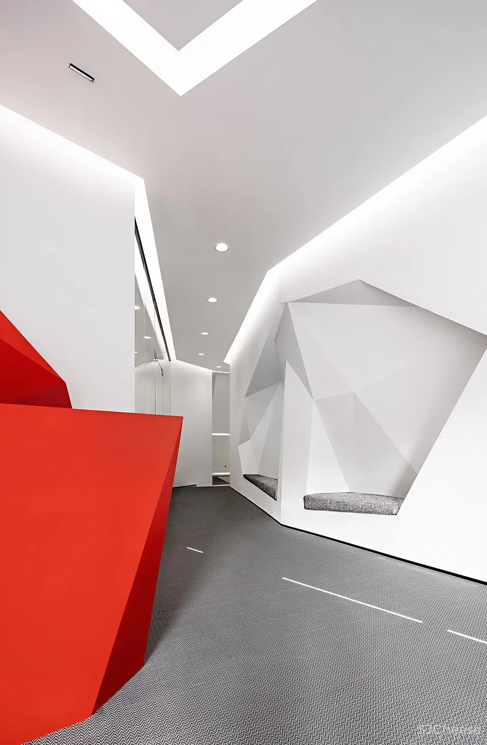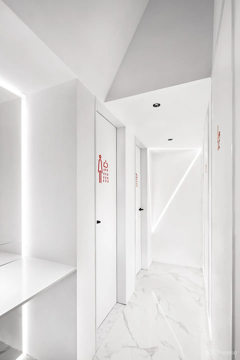 简洁的几何切割,放射状的光线,白色大理石反映的利落,目及之处,都能感受带来的力量与活力氛围的感染。