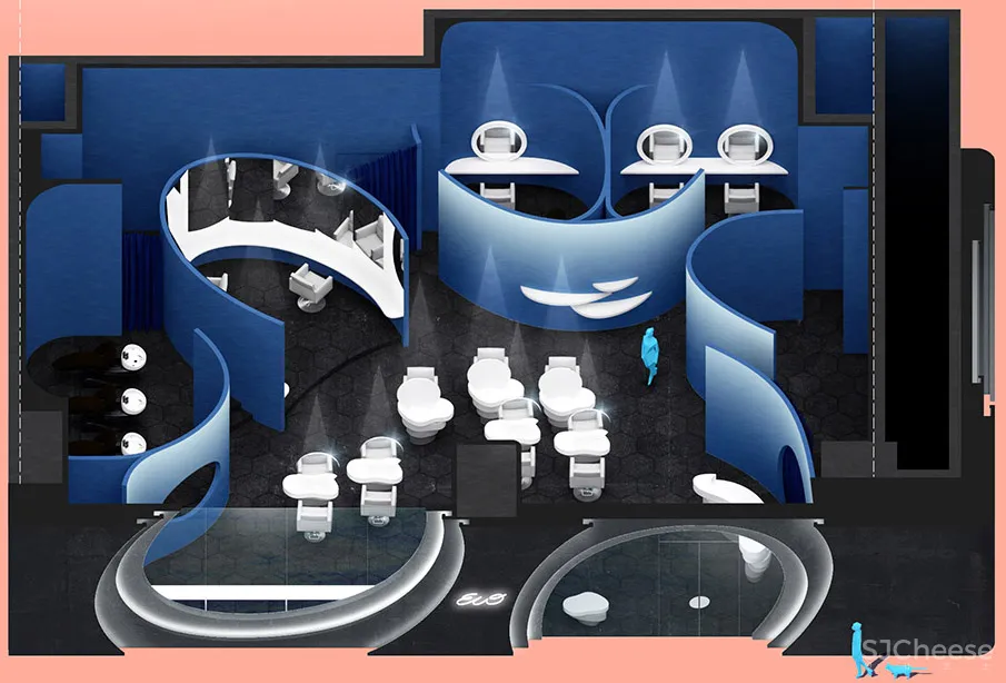 ▼中央美容空间局部,每个美容单元也采用弧形的造型