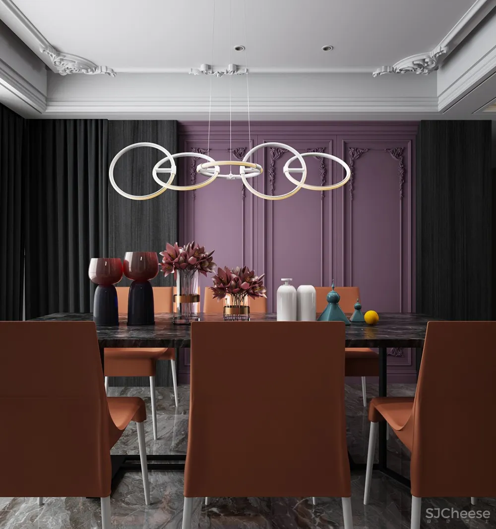 走进餐厅,几多纯粹几多温馨,每一笔设计都在延伸浪漫……别出心裁的照明装置,不仅多了一种安装艺术的感觉,也为空间增加了适用性和趣味性。
