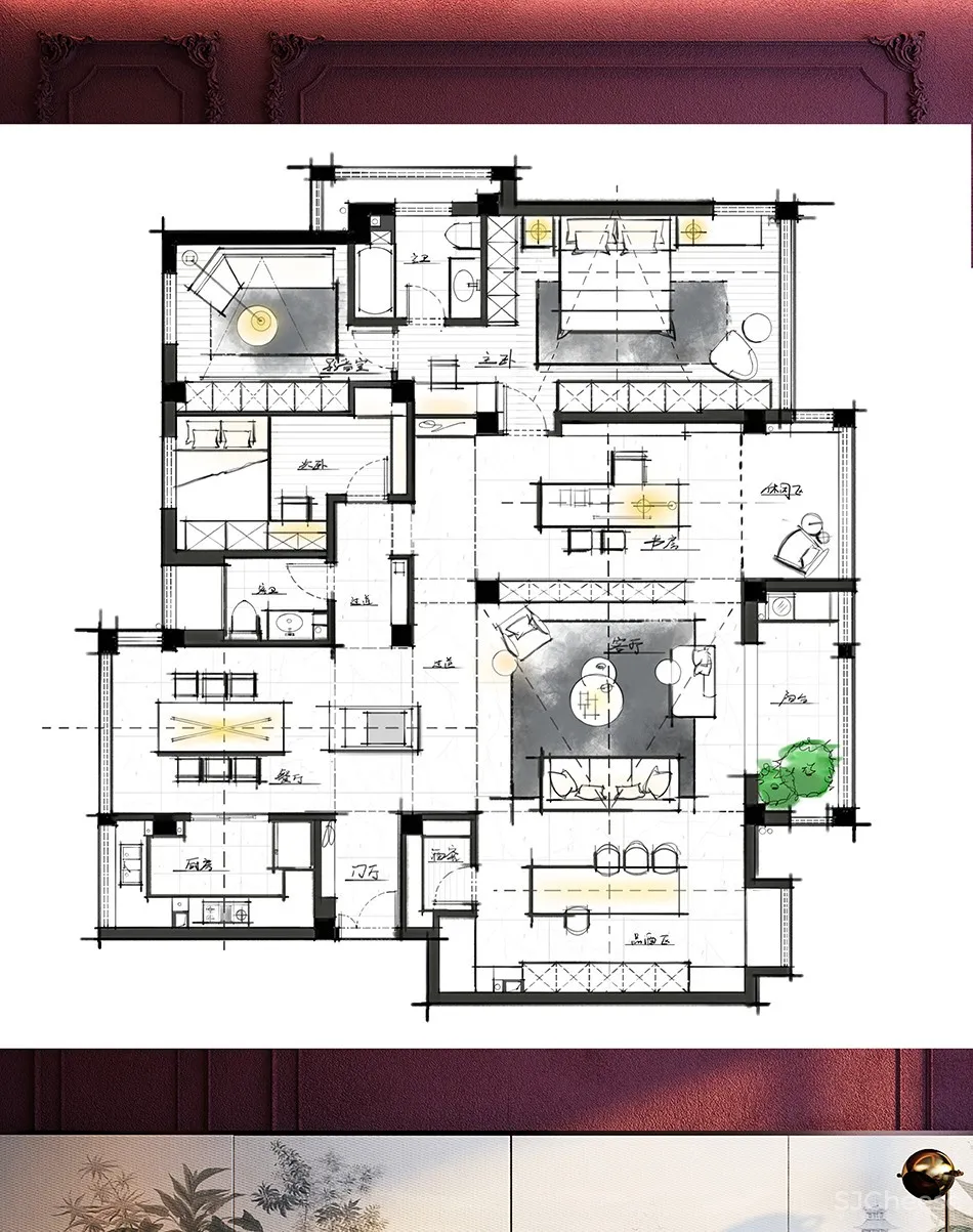 本案设计师带着对装饰主义的突破性诠释,协调中引导微妙的冲突,每一处细节的诠释都体现出对精致生活的追求。