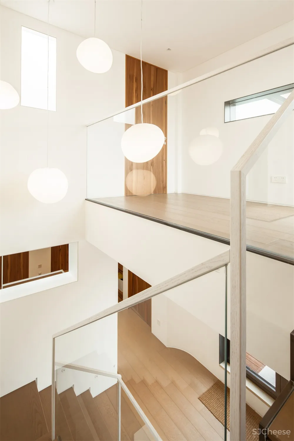 室内整体颜色客户希望以洁净的白色调为主色调。我们通过改善楼梯和增大天井来加强空间之间的趣味性和多样层次性。同时,家庭的公共活动区域增大通透性,保障家庭成员独立空间范围的衔接。