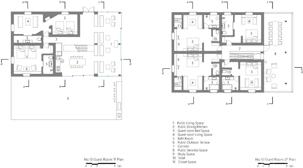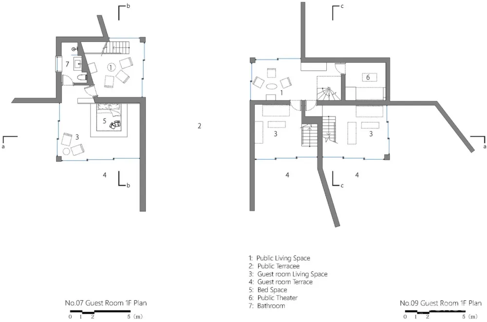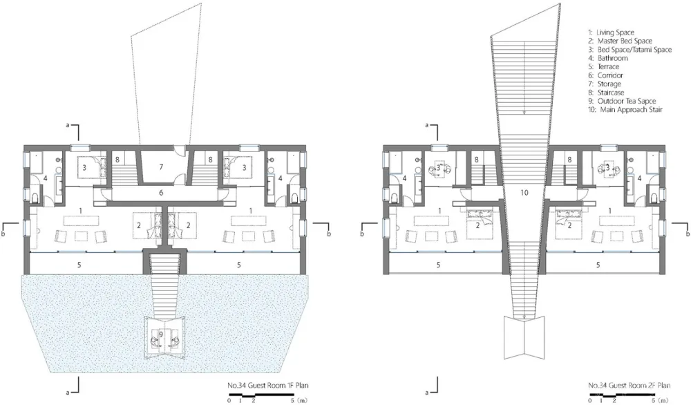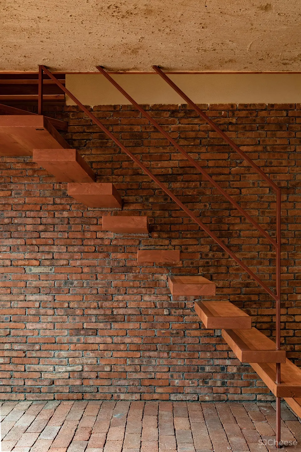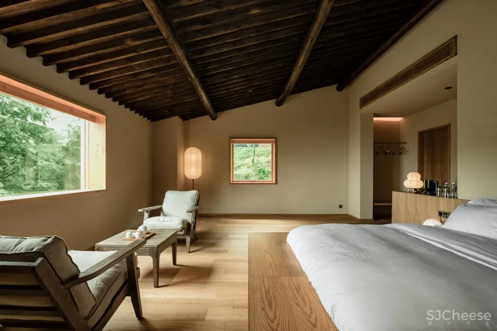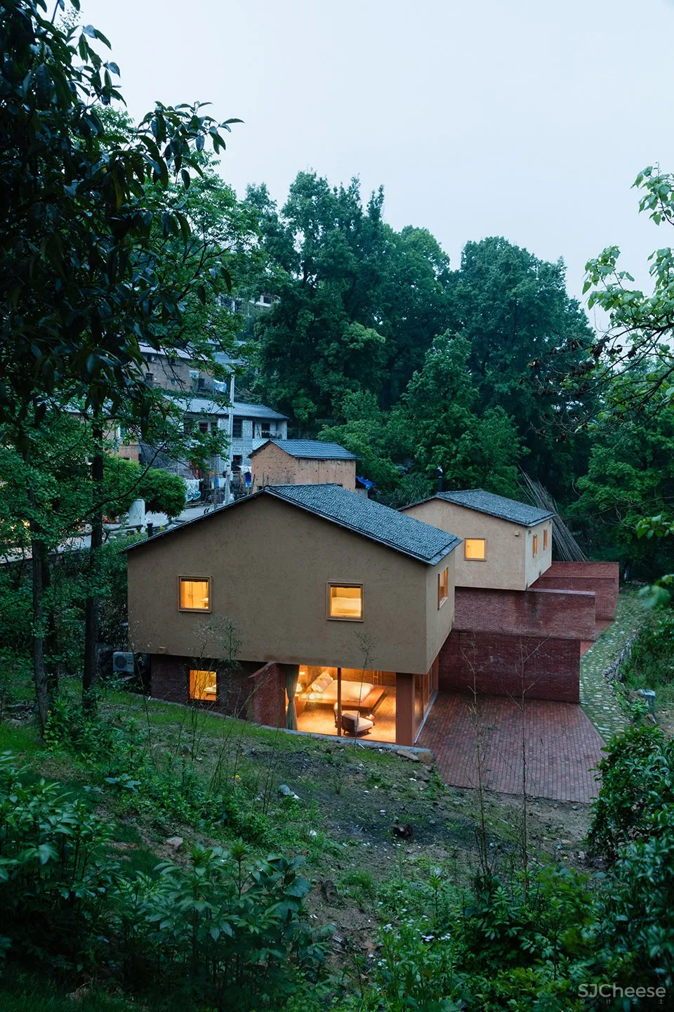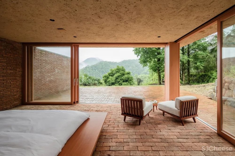 我们在建筑各部分别使用了当地不同的材料,比如竹子、红砖、岩石、和碳化木,以突显每一栋建筑独特且有魅力的地形特征。在一栋楼中保留能充分享受大自然的休息空间(起居室)并利用传统土墙包裹安静的私密空间(卧室),以满足相反的两个设计需求。