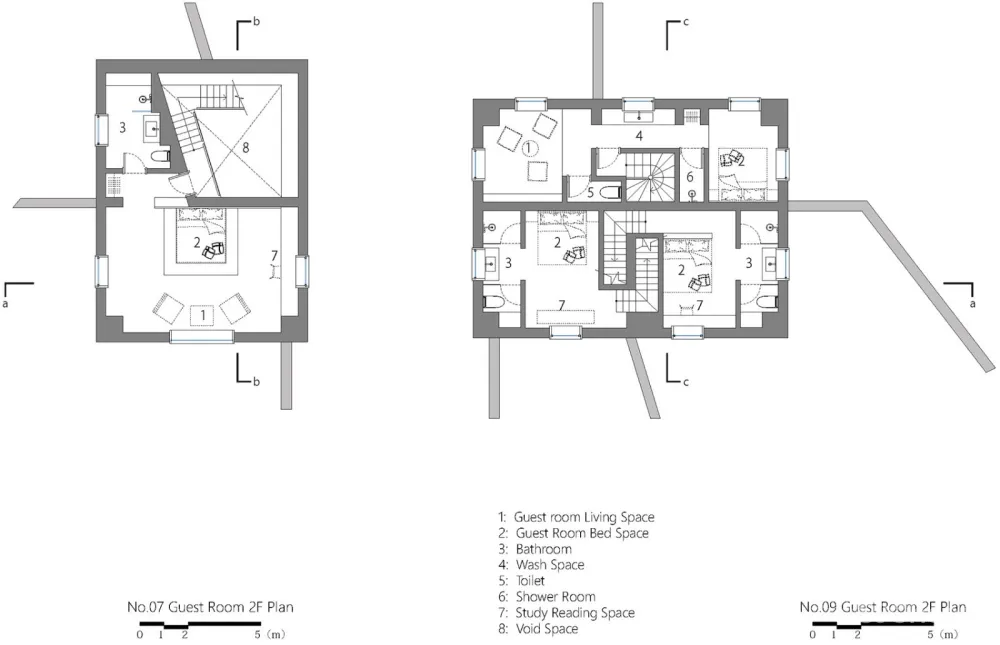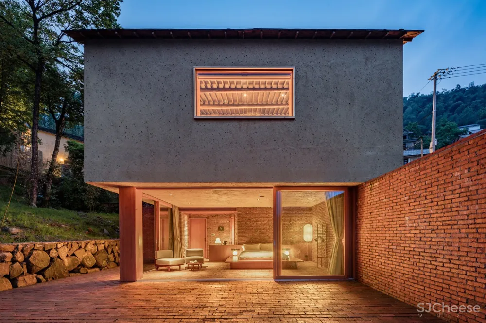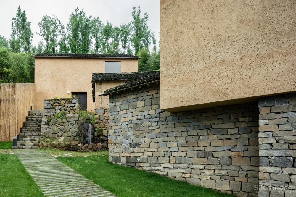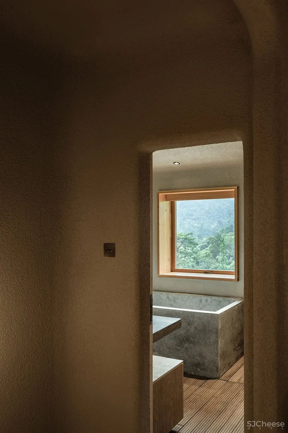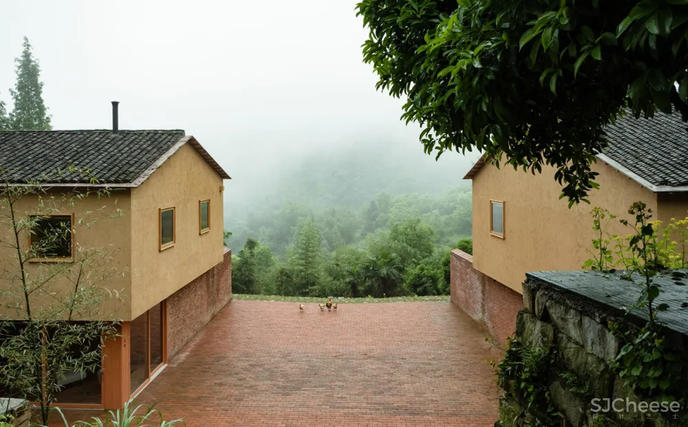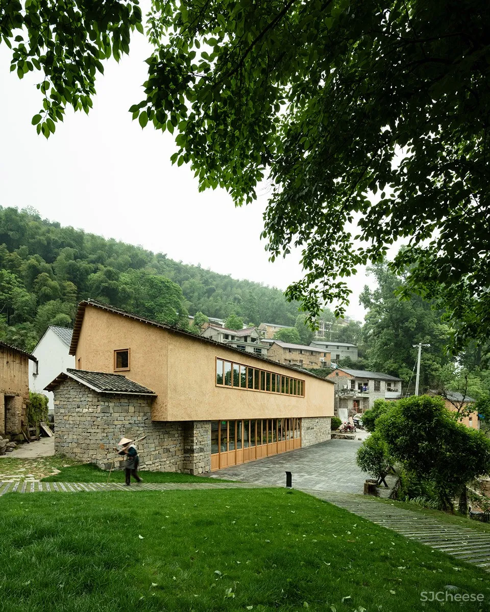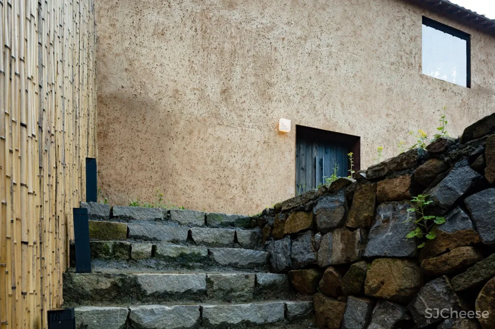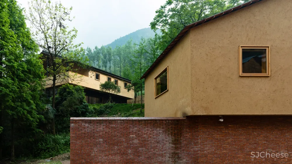 在希望根据各建筑物的特点使用当地常见材料的同时,也考虑了深山中建筑材料运输的困难,所以尽可能地在当地采购或再利用材料,比如土壤,石材等。这样既可以让整体建筑群融入农村景观,也能利用每栋建筑的特色材料由内而外地延续和自然景观相连的空间,营造出一个丰富又静谧的环境。