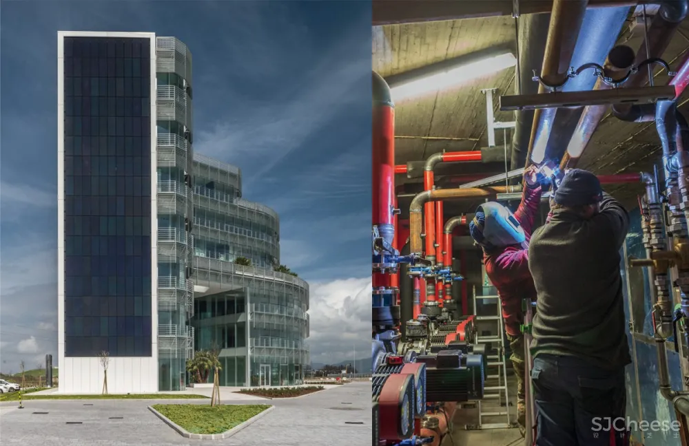 显著的是,该办公建筑基本没有甲烷气体植物,这些植物在意大利传统上被用于供热系统。光伏生产覆盖了冬夏空调和照明几乎所有的能源需求(超过80%)。由于特别的建筑解决方案,挂板成为了该建筑的首个技术系统。这里科技云集,前沿的设备,采用了LED照明系统的智能壳系统,配合空调和再生热交换的地热系统。可再生能源的混合和致力于限制能源消耗的策略让这个总部树立了托斯卡纳地区可持续建筑的标准。该建筑正在接受LEED金奖的可持续性评级认证。