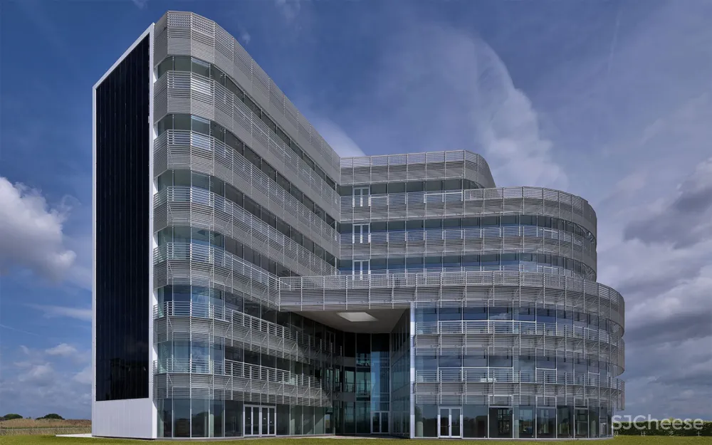 建筑外观,东南侧的立面全部以玻璃实现,exterior view of the building, the southeast facade is completely realized by glass