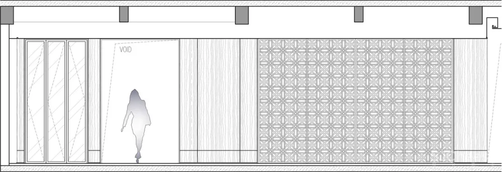 南齐永明年间,以萧衍,沈约、谢朓、王融、萧琛、范云、任昉、陆倕为首,文士云集于竟陵王萧子良左右。史称竟陵八友。包间则借八友雅号,舍姓取名,单字从简,辅以背光,凿木隐现。自上简素袭魏晋,而下丰艳入随唐。南朝印象主色调则须在简素与丰艳间,斟酌揣摩,度量拿捏。黑色暗纹哑光木饰面衬映取色自南梁张僧繇《雪山行旅图》的抽象油画,以纤秾平衡冲淡。
