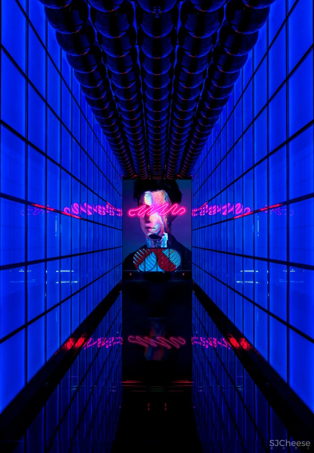 在线性灯光的指引下,好奇心被驱使进入神秘时空隧道,对未知领域的期待极易让人从当下走出。