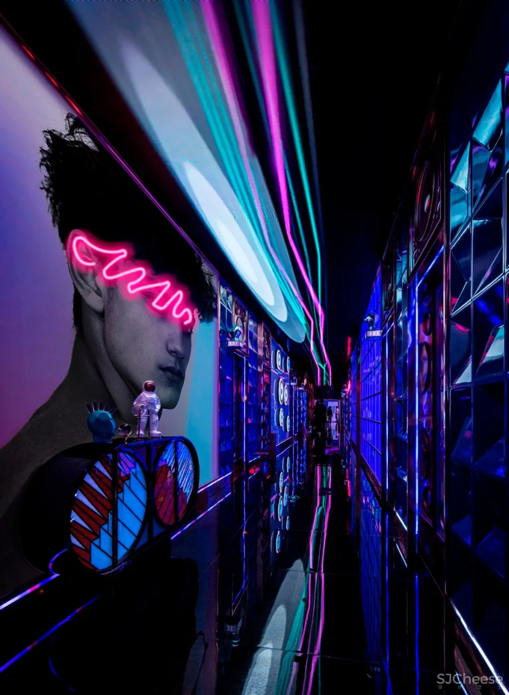 一家夜店是否具有吸引力,在进门的瞬间就已经决定了。电梯门被打开的刹那,恍惚中进入到另一时空,一个酷炫有趣的蓝色星球。