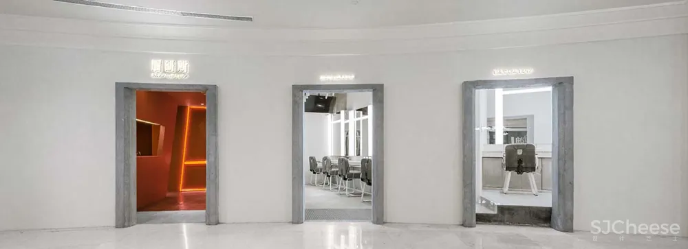 The three doorframes on the outside represent three perspectives, through which different colours and textures can be seen. Three spaces represent a certain state of life and also express our attitude. In this era of rapid change, can machines make everything more efficient, emotions and human nature more efficient? In this age of concise thinking, how can we maintain ourselves? What is the real self?