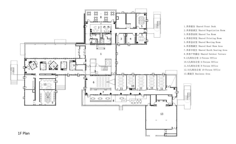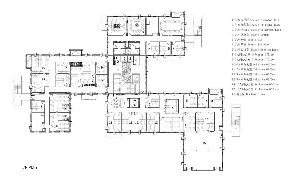 在空间划分上,设计师遵循城市绿色生态美学,充分利用创新技术进行模块化设计,将装配式建造、节能低碳等许多新理念应用到整个空间中去,将整体空间划分成商务区、办公区和休闲区,让一站式的休闲服务和办公完美结合,触达现代人内心的深层需求,从而使整体设计方案在保持高品质的同时做到高效、低成本。