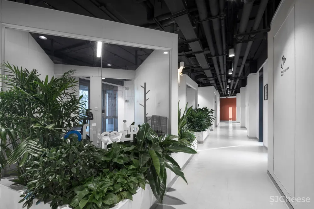 在呈现绿色生态之外,在整个办公区域内,融入了人脸通行、数字化管理、办公会议共享预定以及会议无线投屏等功能,再加上手机摇一摇的开门技术,让人和空间时刻都能进行智能互动。