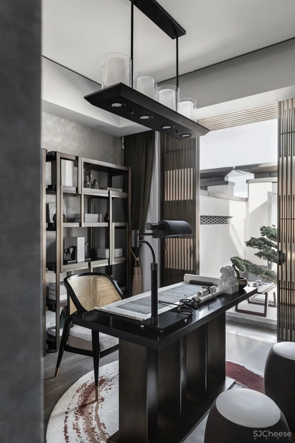 书房的设置,颇为自然通透,提笔书写之时,抬头的一抹绿色,仿佛也在欣赏。