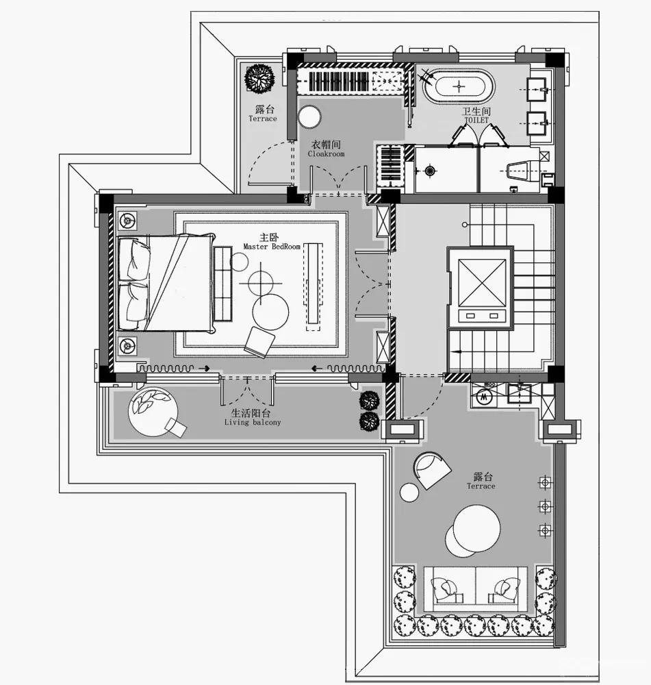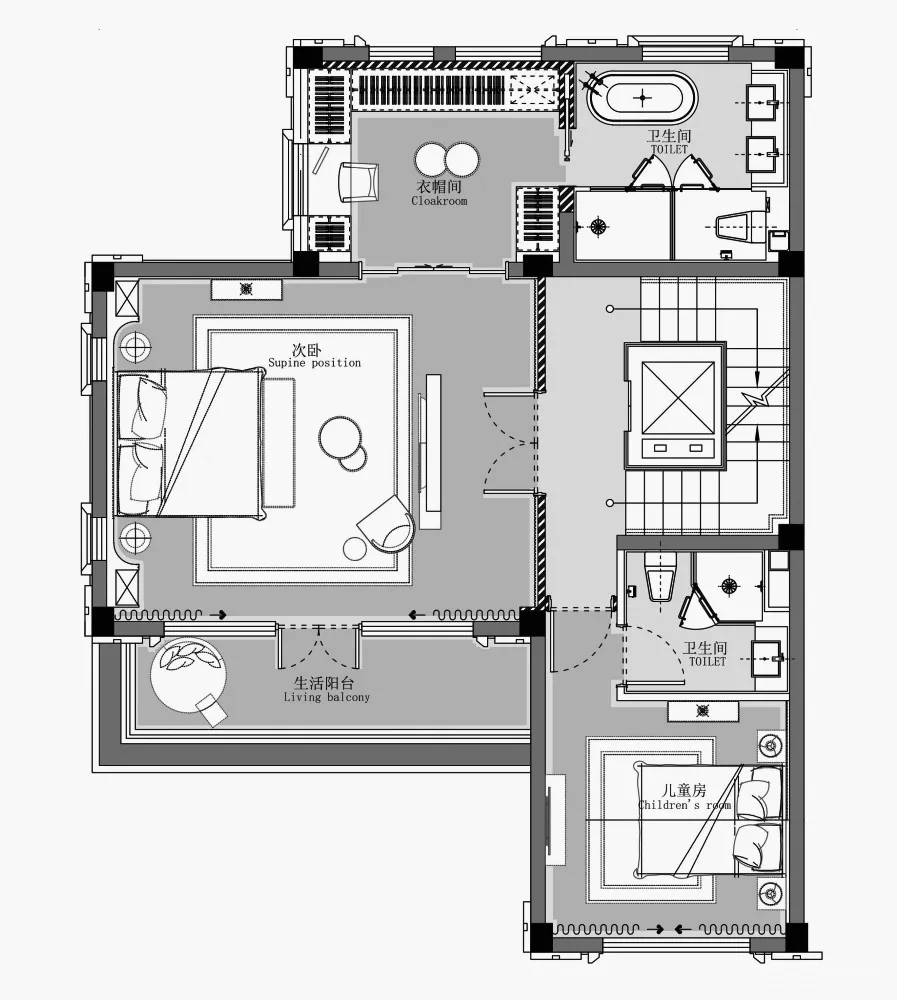 拾级而上二楼居住区,私密空间透露内心深处的波澜与渴望,是伊甸园,是秘密花园般的地位。