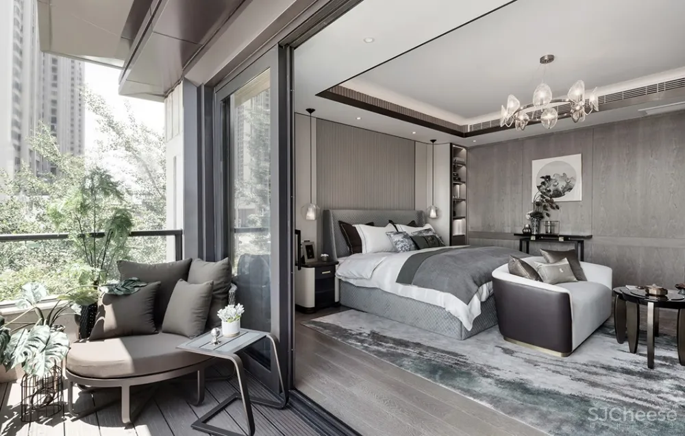 全明落地窗最大限度纳入晨光与微风,降低饱和的整体色彩,将宁静淡雅,温馨舒缓徐徐表达。如果空间能激活嗅觉,那它一定是干燥薰衣草清香,寂静安然,绝不喧宾夺主,只为造一个好梦。
