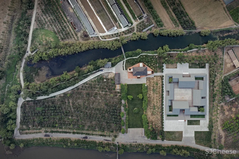 该项目地处市郊,地势平坦,周边由果树林、农田和溪流环绕,风景优美。场地东侧比邻着一座粮食加工厂,这是由建筑营早年设计的坡屋顶围合式建筑。用地上曾有一栋木屋,是十多年前典型的木结构产品样式。为了追求更好的空间品质,户主决定对其拆除并在原址新建一座房屋。建筑的基本功能是休闲度假,既可以居住,也可以用来接待客人。