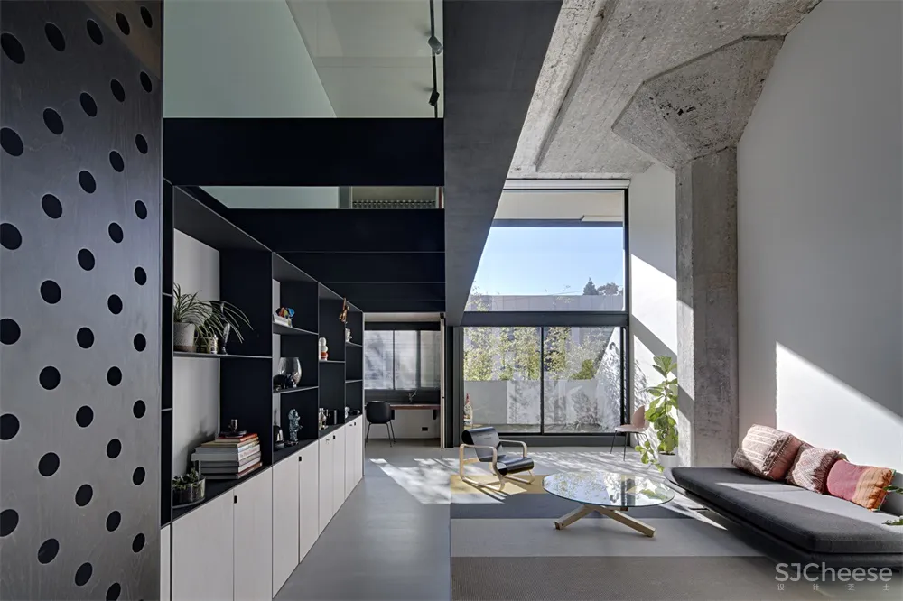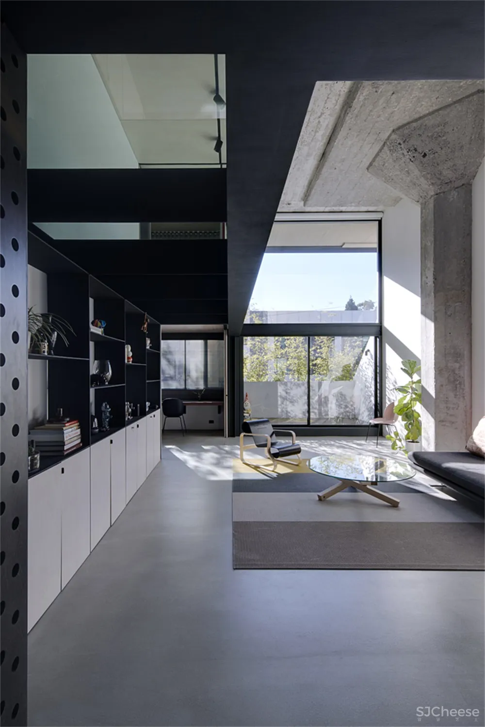 我们的方案是完全拆除现有公寓的整个内部,露出混凝土外壳,然后使用一系列由轻质钢框架来划分活动区域,重新布置包括三间卧室在内的一系列灵活的生活空间。每个空间都向主体量开放,因此分区的灵活性也提供了共享空间,在整个空间中增加了一种宽敞的感觉。