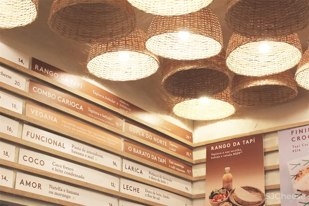 Tapí一开始是在食品卡车上运营的,现在他们有了自己的实体店,该项目面临的挑战是如何将巴西的地方主义(北部/东北部)与一个年轻而成熟的品牌的国际化元素结合起来。客户希望在里约热内卢的城市情景中实现低成本项目,而不会忽视其原料食品——木薯(从木薯根中提取的淀粉)。该研究考虑了颜色和纹理——从食物的制作方式来体现该地区的审美特征。