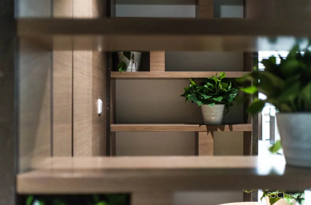 多层次的体量感是整个空间重新组合的核心和发展基础。用石材,木材及玻璃围成的大大小小的盒子作为整个空间的组合关系,功能相互穿插,空间相互映衬。