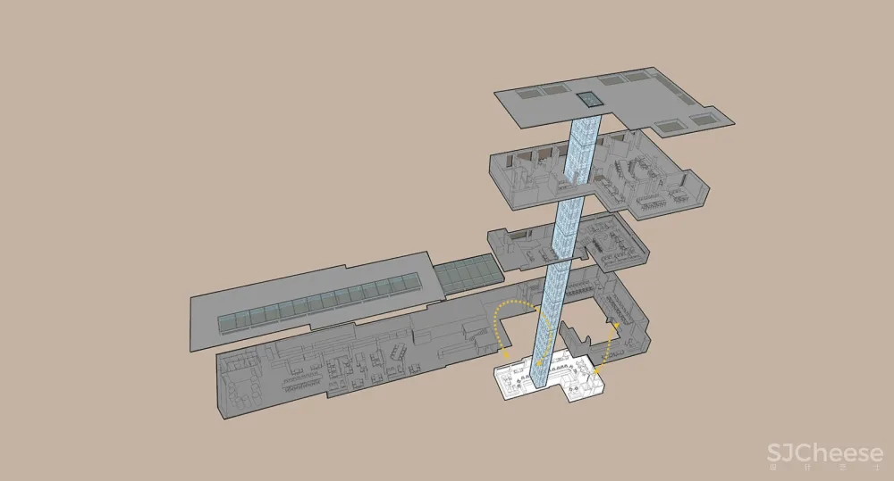 “在商业设计过程中,设计师不仅要完成空间的美观与功能,更要参与到整个商业业态的规划之中。”设计师说道。改造后,空间之间独立又互通,从任何一个空间进入,都可以步行到其他空间中去。动线设计让整个项目的体验更加完整,商业运营更经济高效。